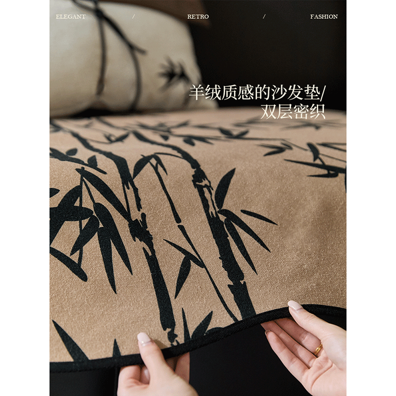 【孤品25折】蜡笔派竹影异形沙发新中式复古类羊绒四季坐垫P