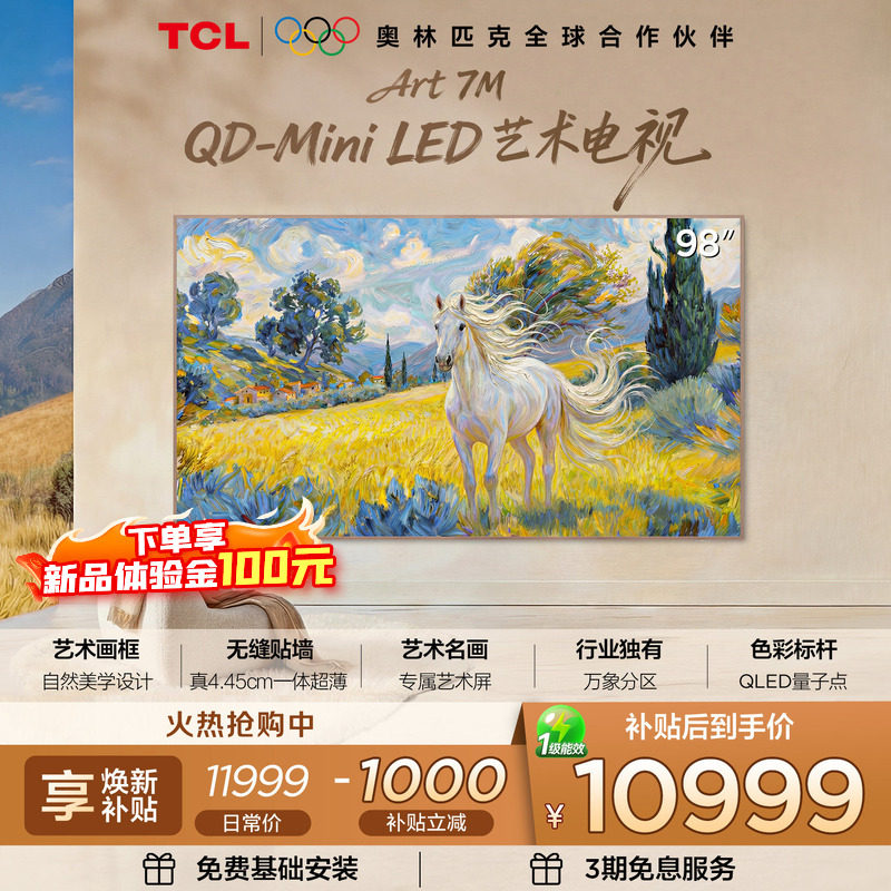 TCL艺术电视 98Art 7M 98英寸 QD-Mini LED 壁纸电视 贴墙超薄tcl