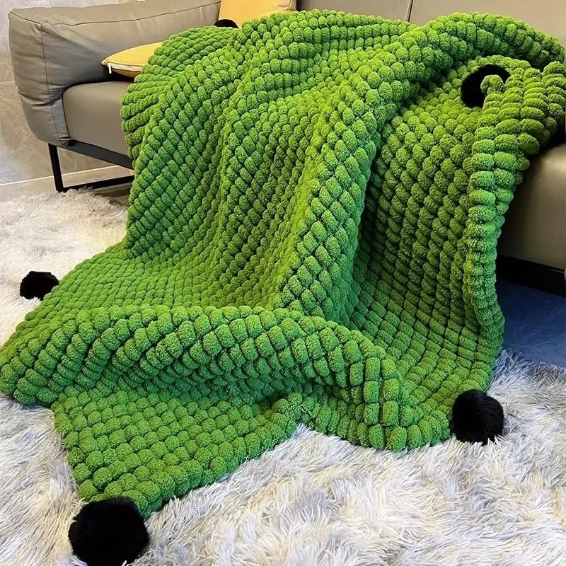 毛毯大球球线手工编织DIY毛线毯子粗盖毯坐垫简单毛线团绿色柔软