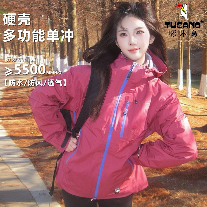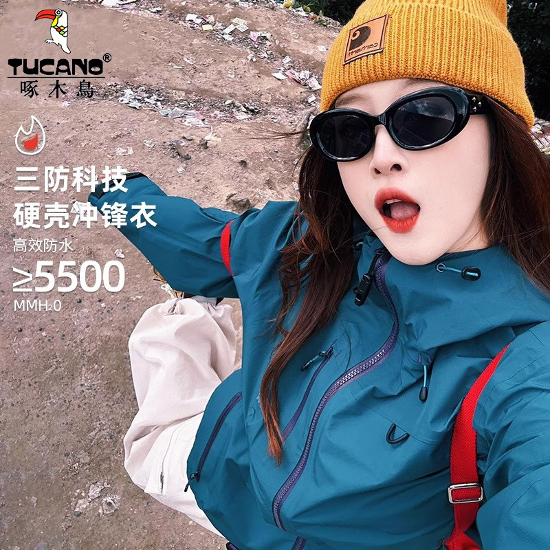 啄木鸟冲锋衣男女款2025新款小个子户外防风防水登山服夹克外套女