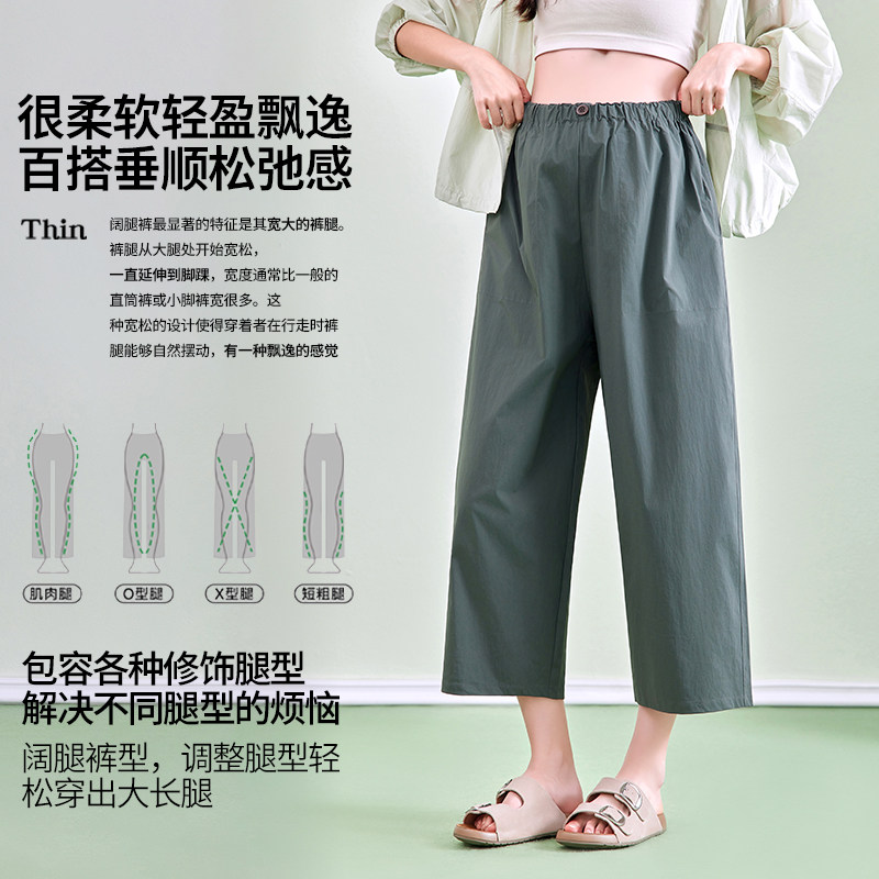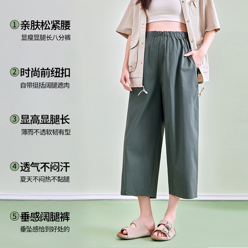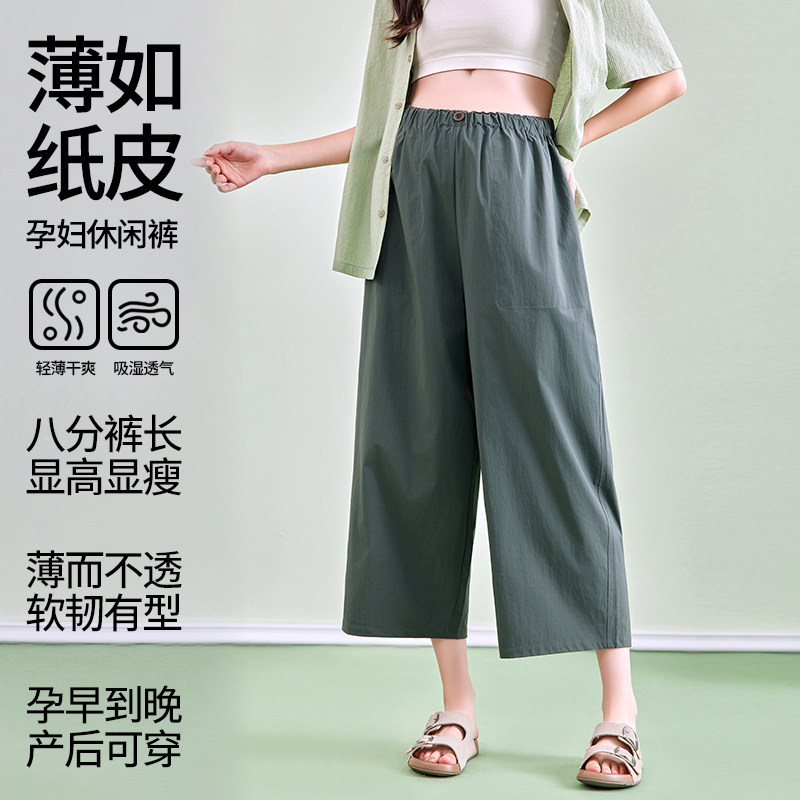 婧麒孕妇裤春夏外穿不勒肚子九分休闲裤大码无托腹薄款阔腿裤春装