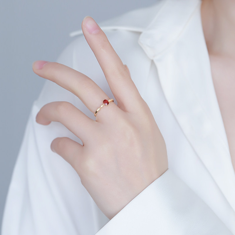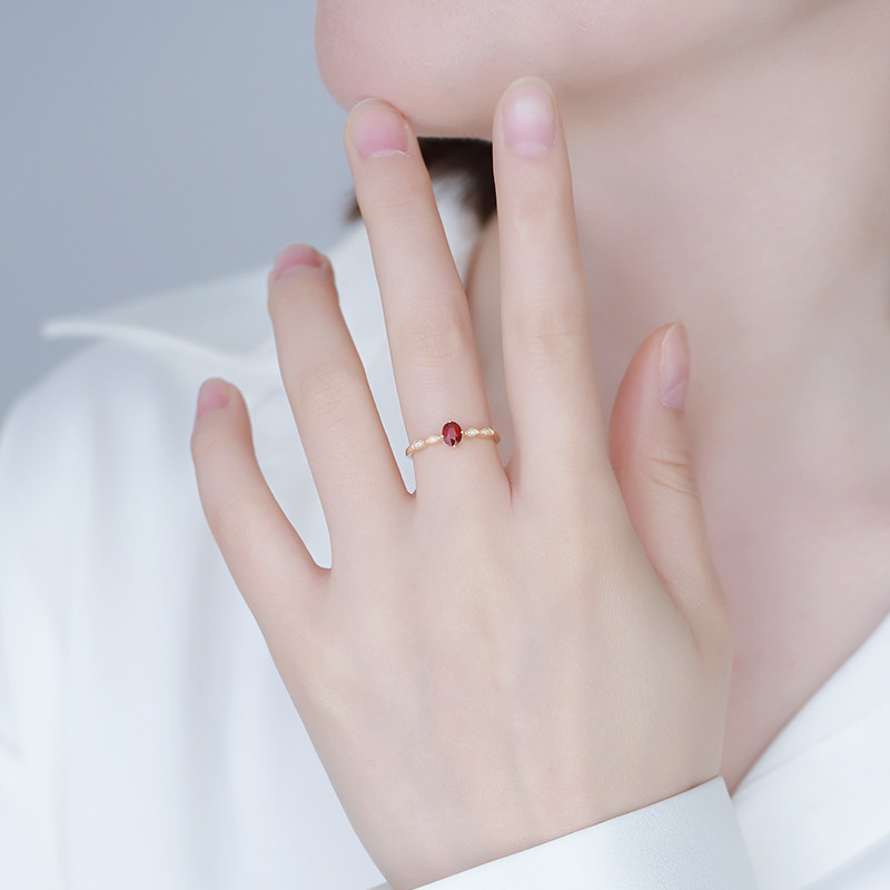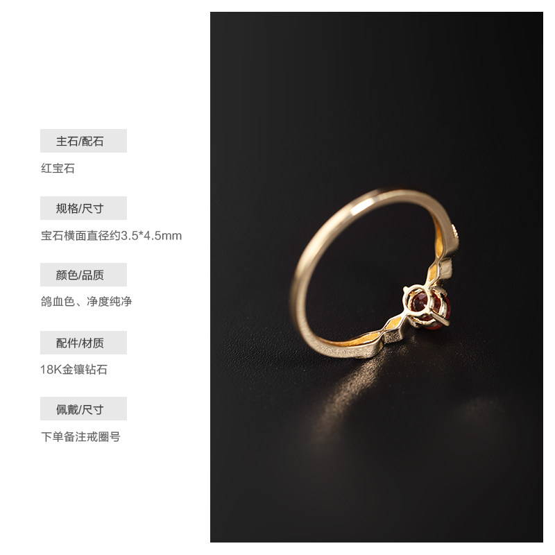 若华珠宝菱汐#天然鸽血红宝石戒指女18K金镶钻石尾戒彩宝指环定制