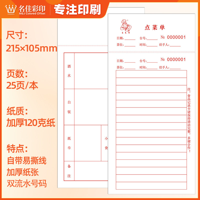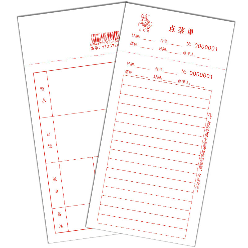 点菜单现货存根式点菜卡定制印刷酒楼餐厅饭店餐饮点心食品记录卡