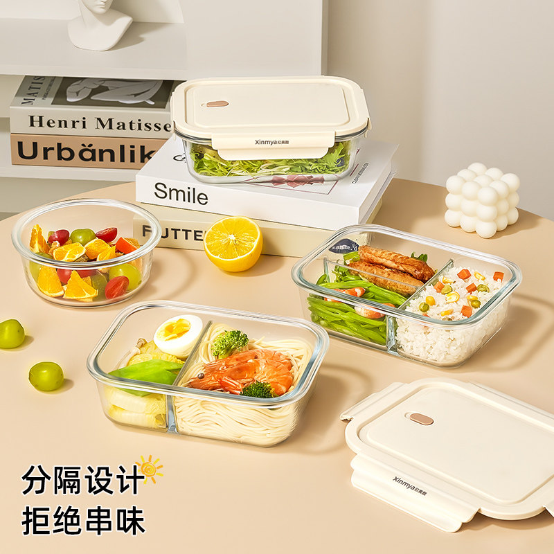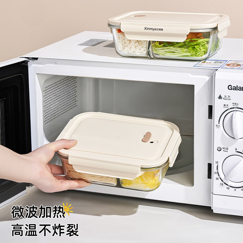 玻璃饭盒微波炉加热专用学生上班族带饭餐盒保鲜盒分隔密封便当碗