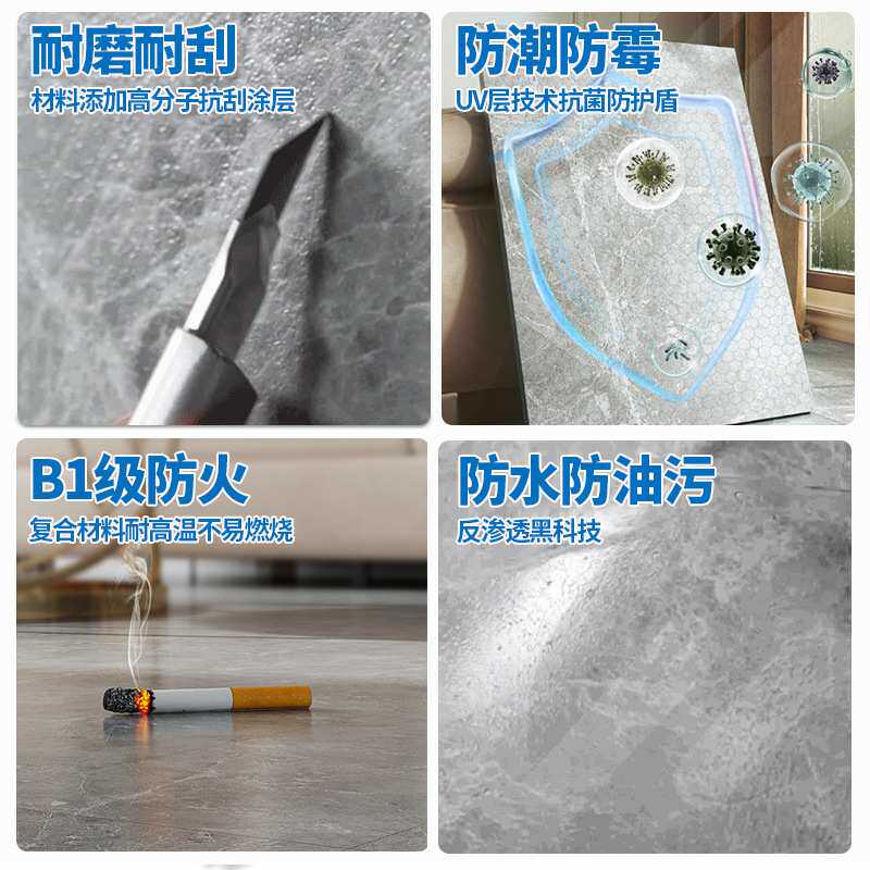 spc锁扣地板大理石纹水泥灰PVC加厚耐磨石塑强化复合地板革家用