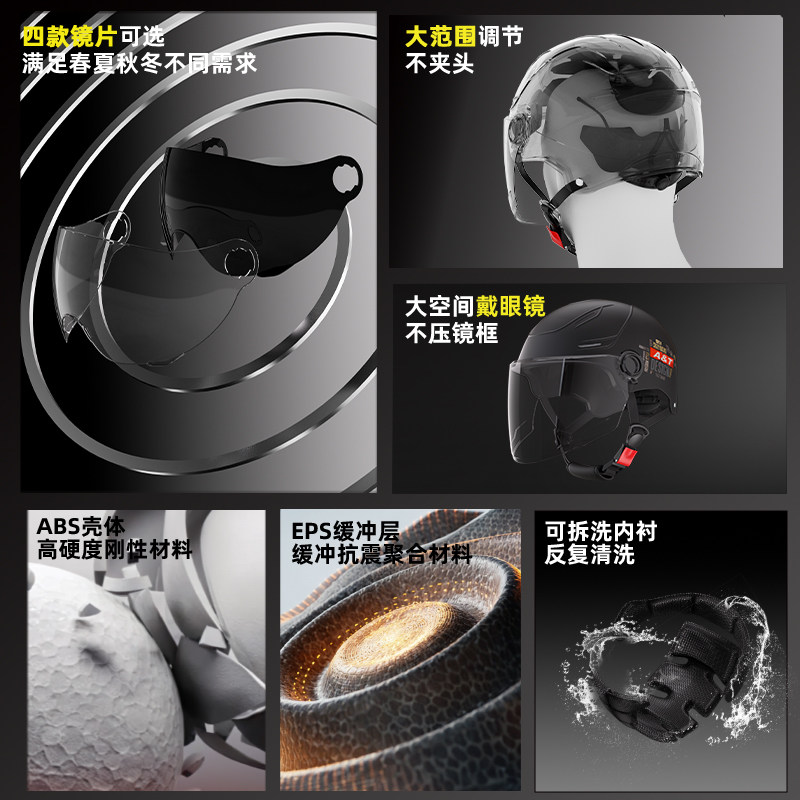 野马3C认证新国标电动摩托车头盔夏季防晒双镜男女半盔四季安全帽