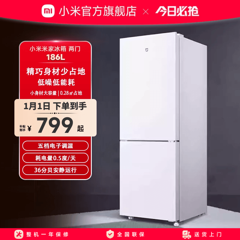 小米米家186L双开门直冷家用租房宿舍节能冷冻冷藏小冰箱