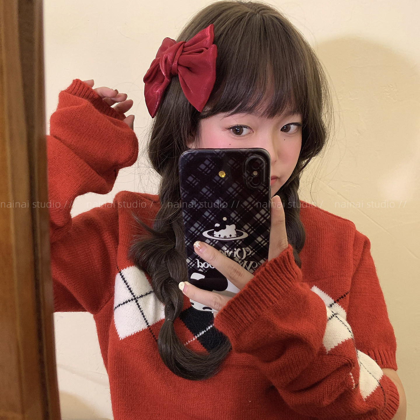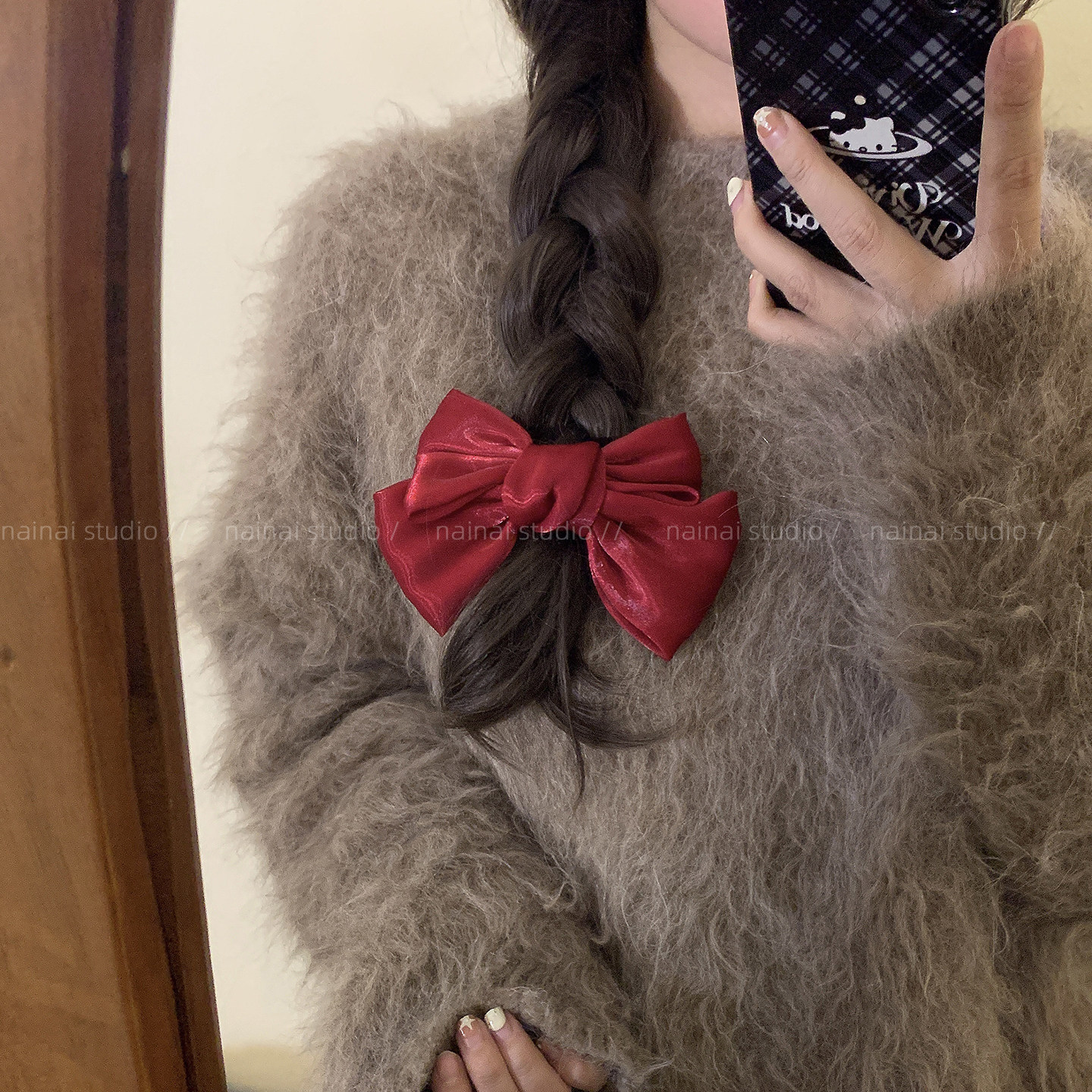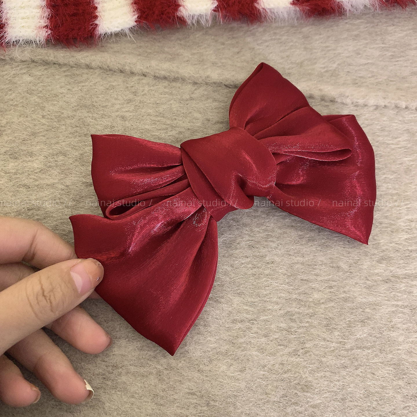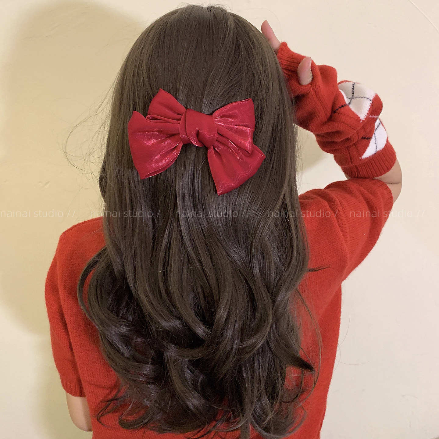 红色蝴蝶结发夹~适合圣诞节的发饰甜美亮丝后脑勺顶夹侧边夹头饰A