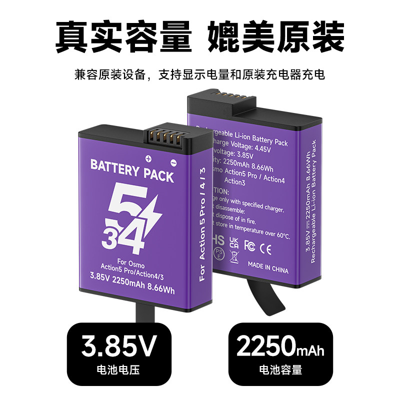 适配DJI大疆action5proAction4/3电池充电器灵眸运动相机充电盒电池多功能收纳盒充电管家运动相机配件
