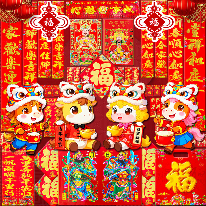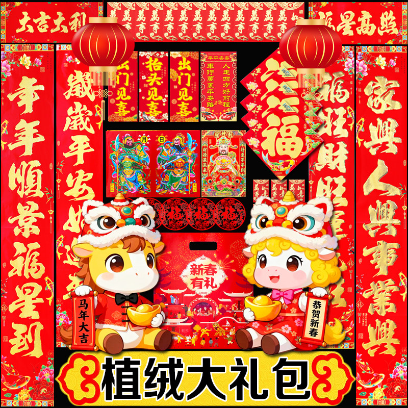 春节对联春联大礼包2026马年新款植绒农村大门家用高档过新年批发