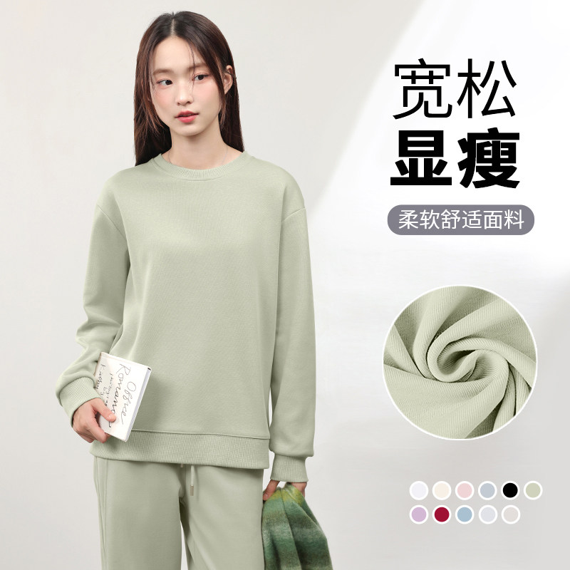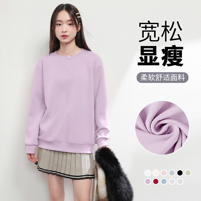 宽松显瘦圆领卫衣女2024年秋冬新品长袖套头粉色印花上衣加绒加厚