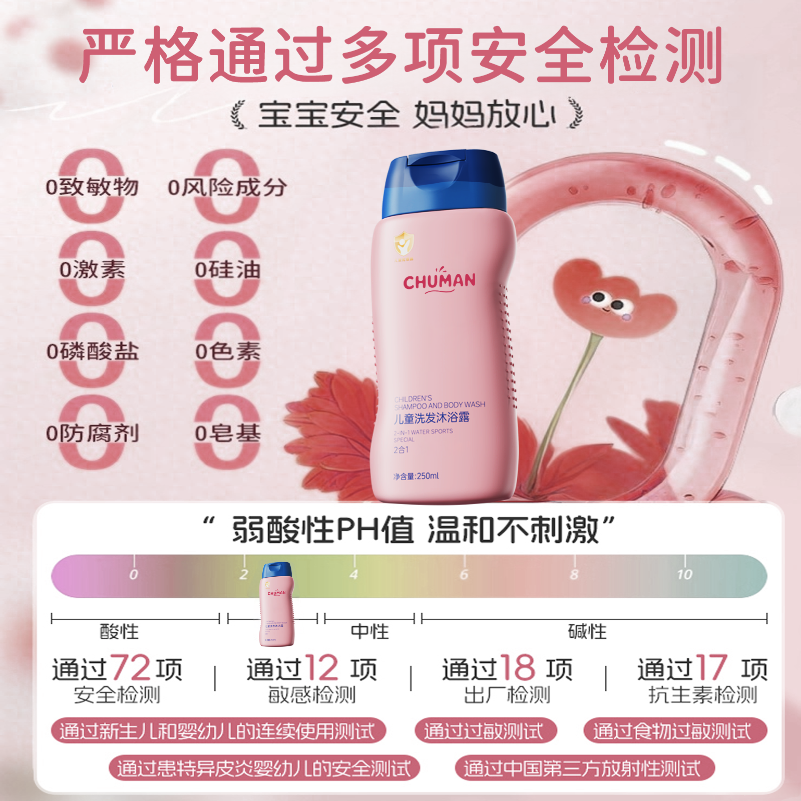 兔头妈妈儿童沐浴露洗发水二合一桃叶精华婴儿宝宝专用洗头沐浴乳