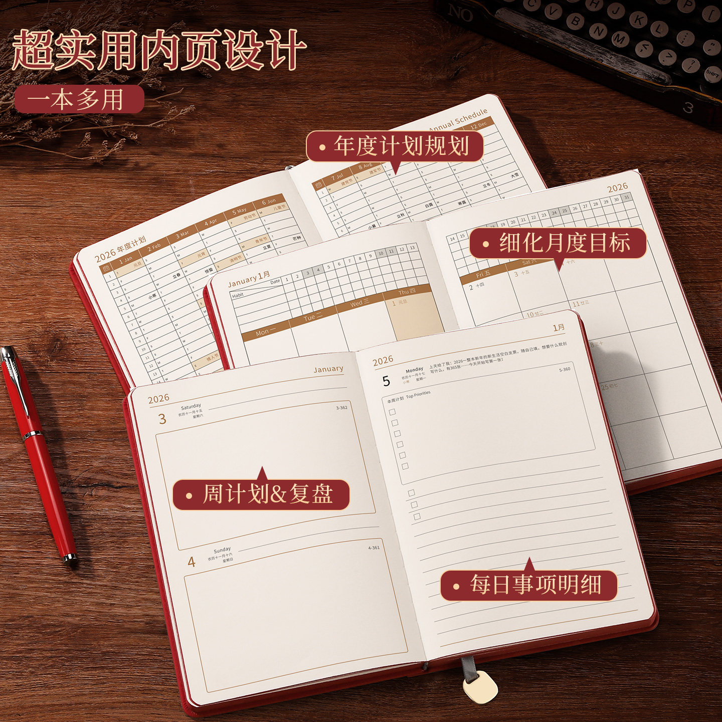 大容量日程本国潮记事本高效打卡计划本一本用整年2026年新款创意国风加厚笔记本多功能检索超厚400页手账本