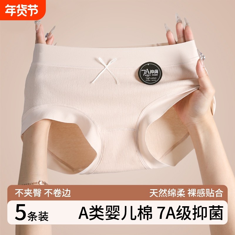 内裤女士纯棉2024新款7A抗菌全棉裆无痕女生中腰收腹性感三角裤头