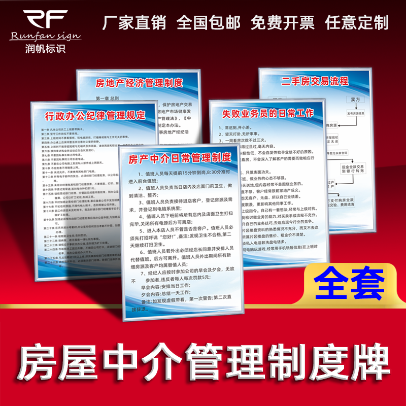 房屋管理规章制度牌上墙房产公司中介二手房交易办理流程买卖收费标准相关资料宣传海报墙贴挂图标识挂牌定制
