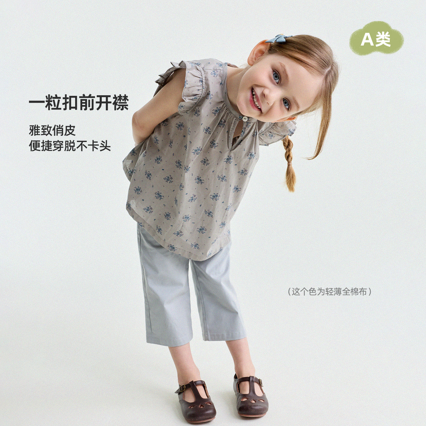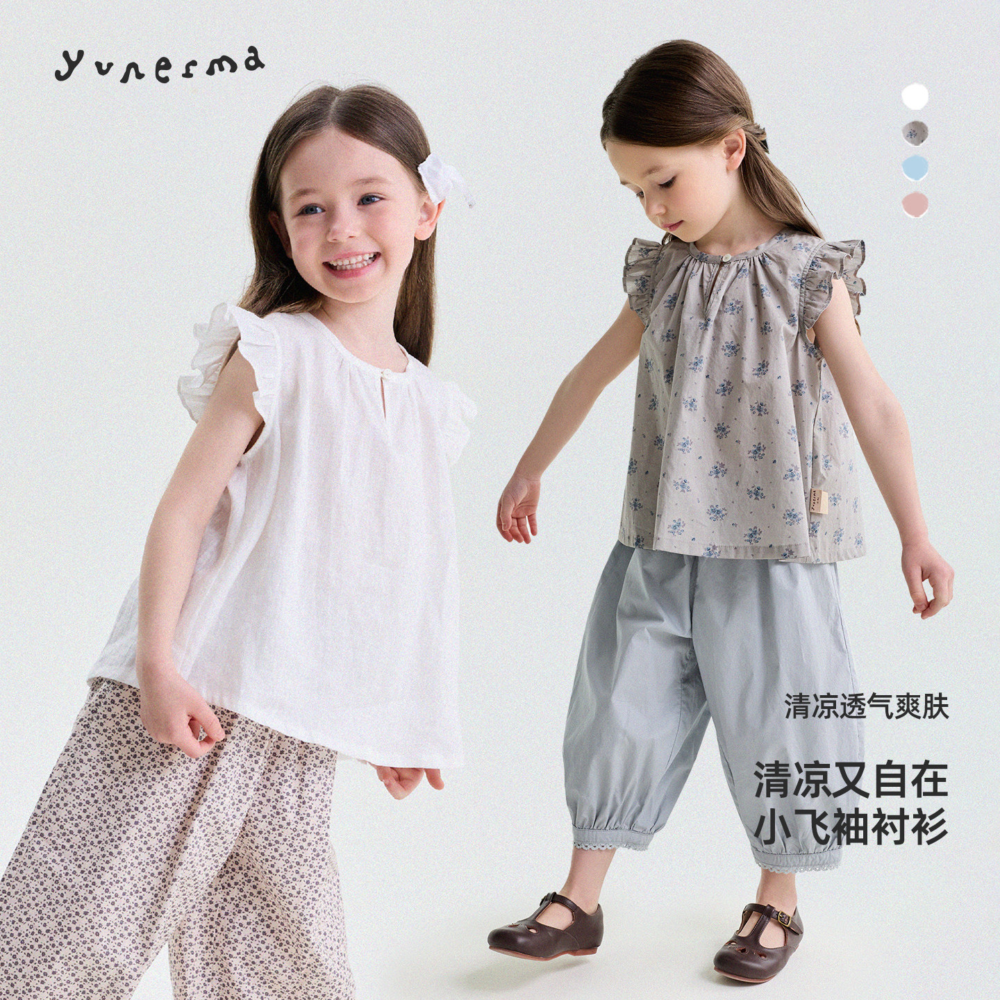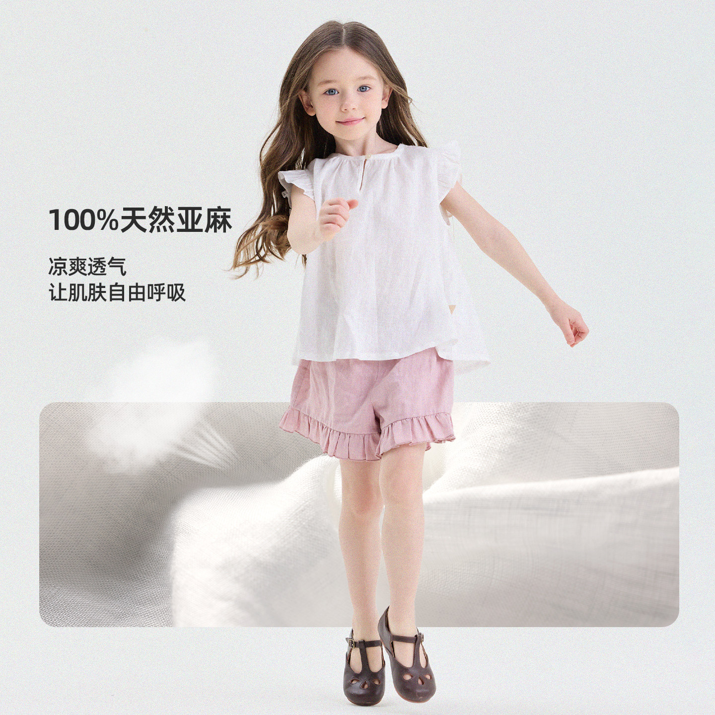 yummyrocky亲子亚麻舒适透气阔版女童衬衫外套/直筒裤/短裤