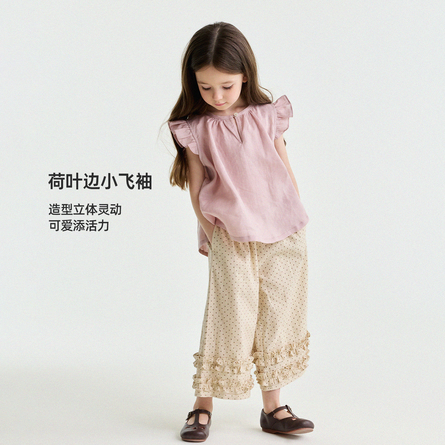 宝宝夏季新款纯亚麻纯色飞袖娃娃衫允儿妈女童2026纯棉碎花背心潮