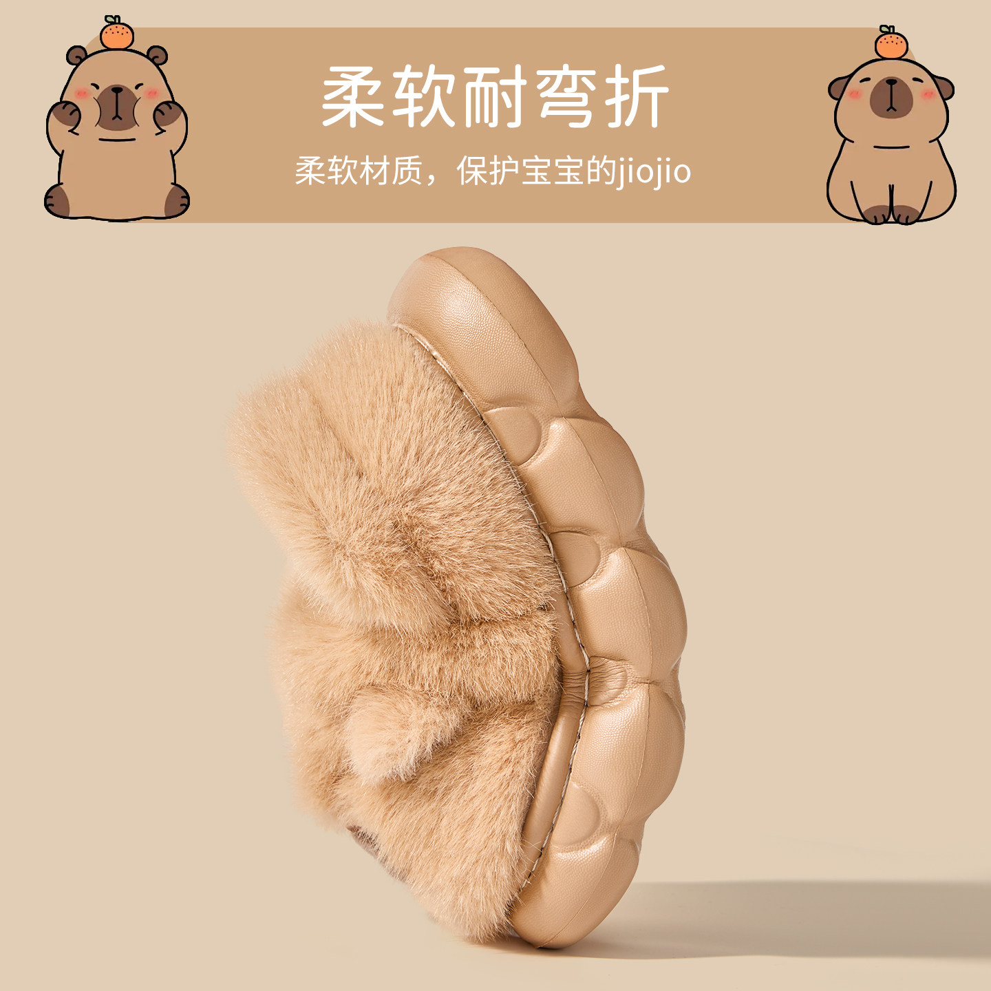 卡皮巴拉儿童棉拖鞋男童冬室内居家棉鞋宝宝毛毛绒包跟毛拖鞋男孩