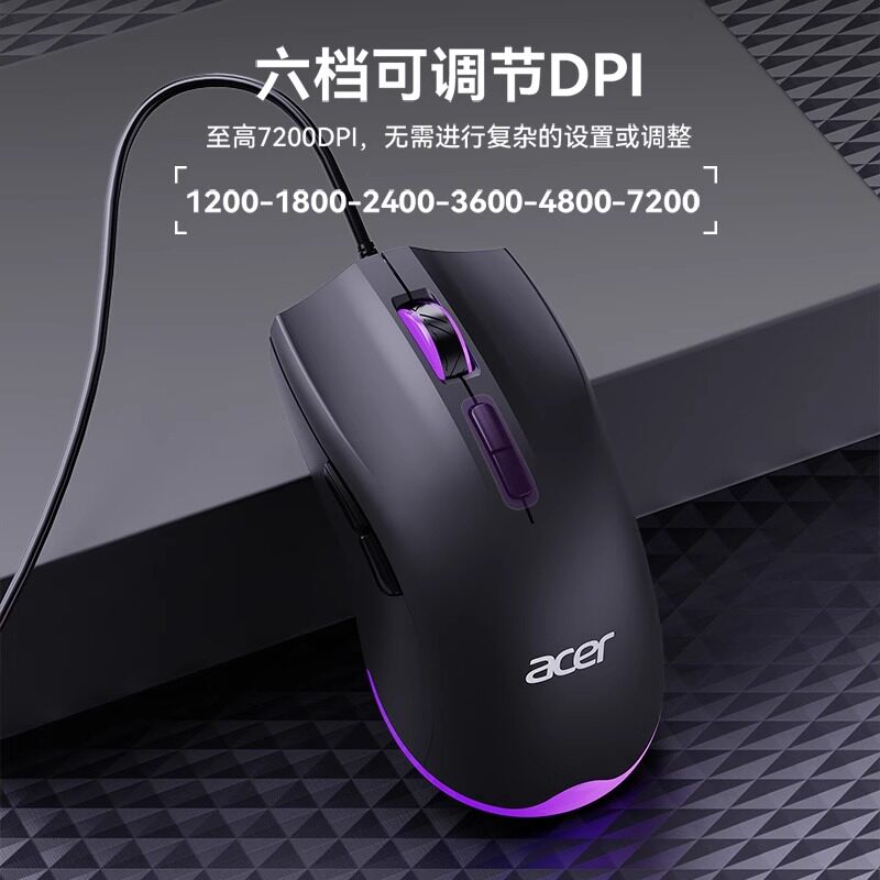 Acer/宏碁有线鼠标静音7键电竞游戏专用台式电脑笔记本女生