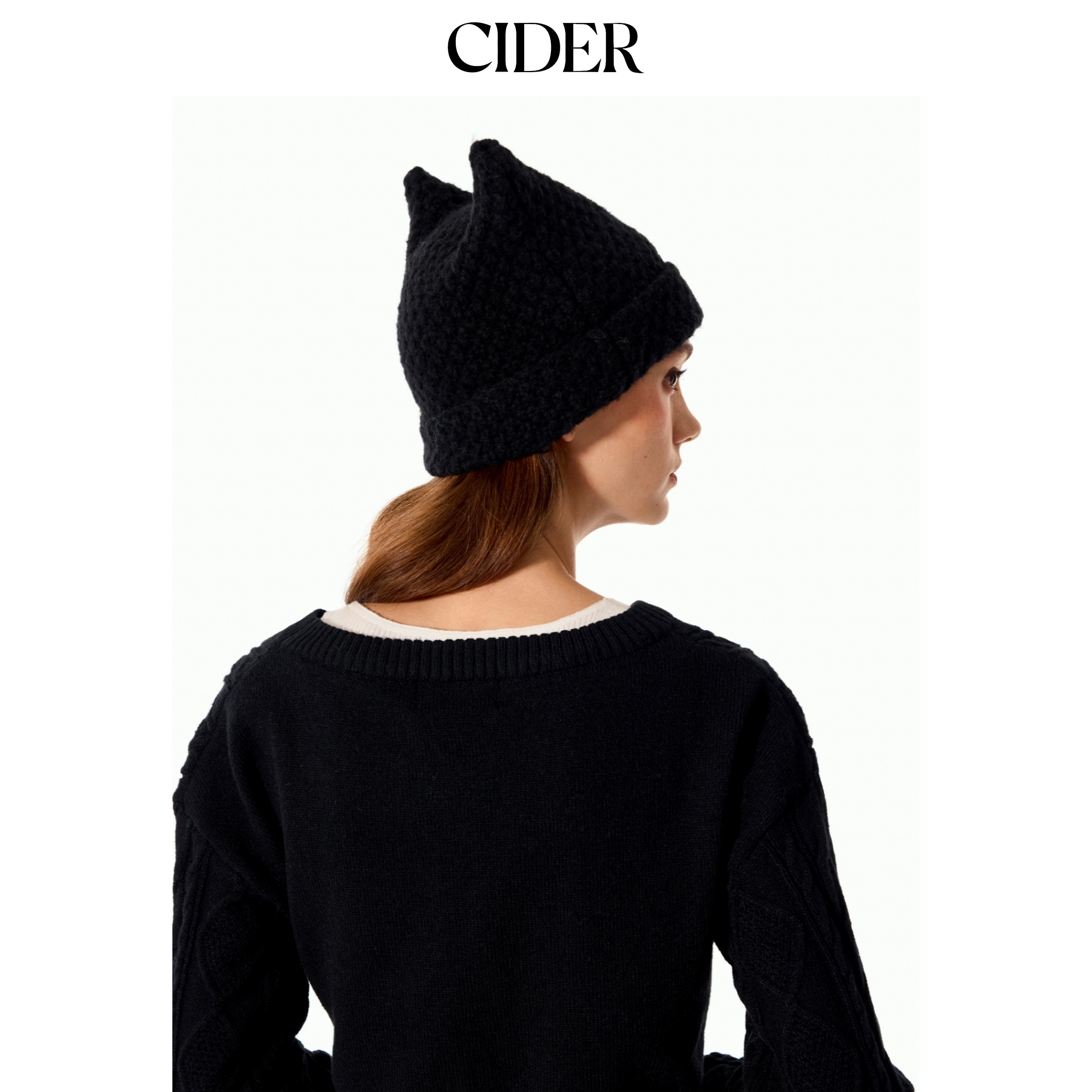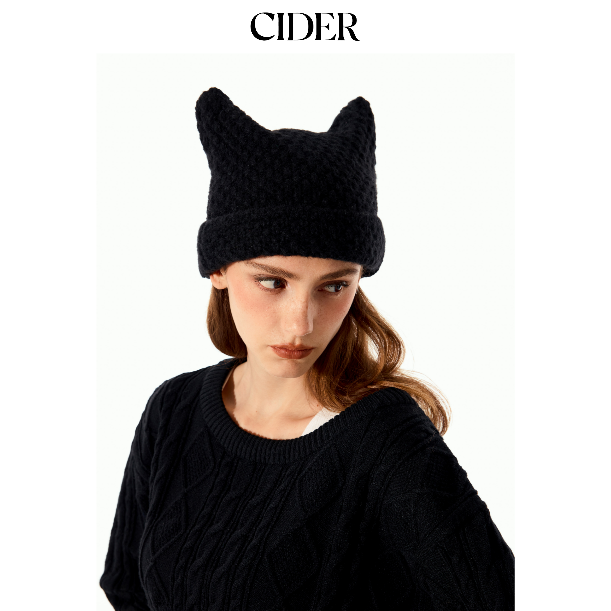 【明星同款】CIDER 帽子 猫耳卷边保暖针织帽女装112439868