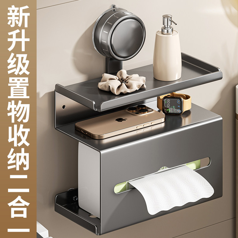 卫生间纸巾盒置物架壁挂式抽纸盒浴室免打孔厕纸架家用厕所卷纸架