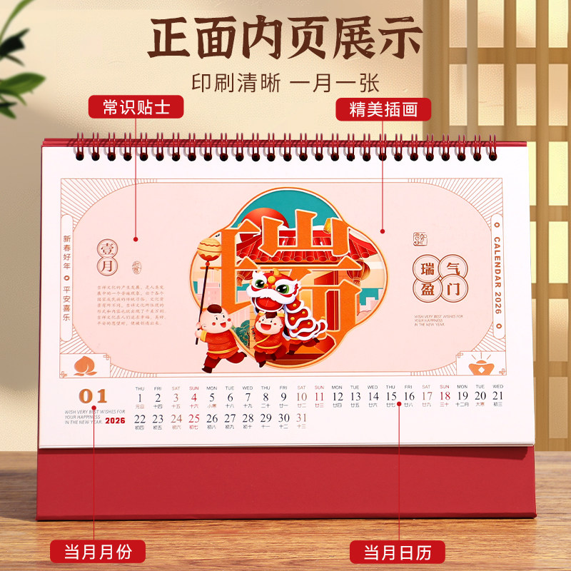 台历2026年新款日历定制logo创意简约小清新韩式办公年历个性中国风桌面摆件商务工作记事计划本订制广告月历