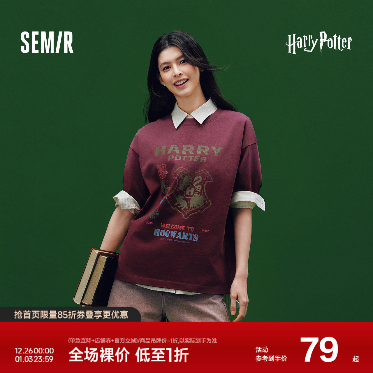 [商场同款]森马哈利波特联名短袖T恤女纯棉2025新款oversize夏装