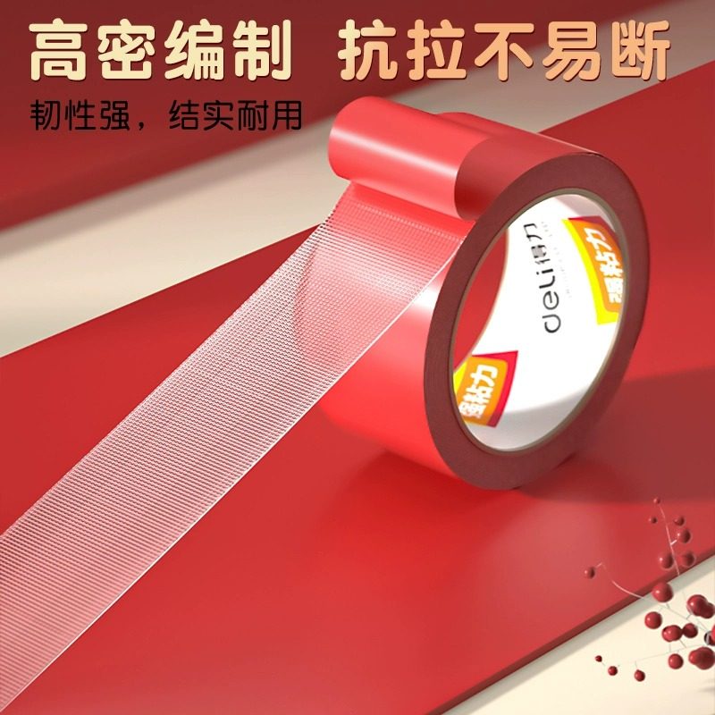 得力网格双面胶不留痕高粘度布基胶带强力固定贴粘地毯防水透明无痕婚庆耐高温春联对联专用地板地垫革免打孔