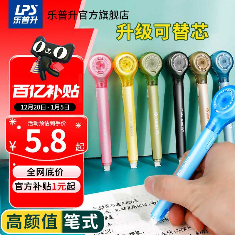 乐普升笔式修正带隐形原纸色修正带高颜值女生便携可替芯黑科技改正带学生用涂改带本色乐普生修正带笔式