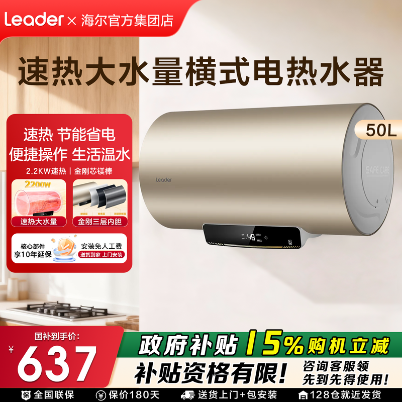 【政府补贴】海尔电热水器统帅家用节能50/60/80L储水式洗澡速热