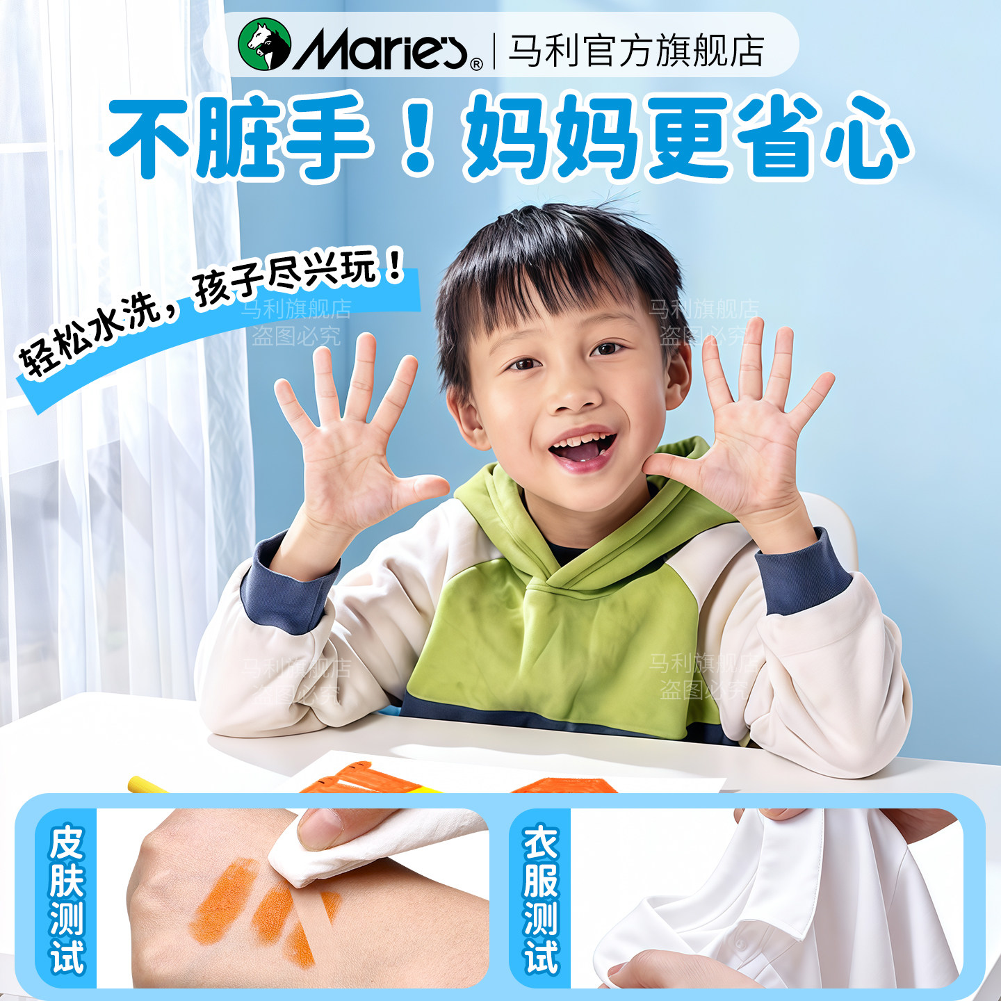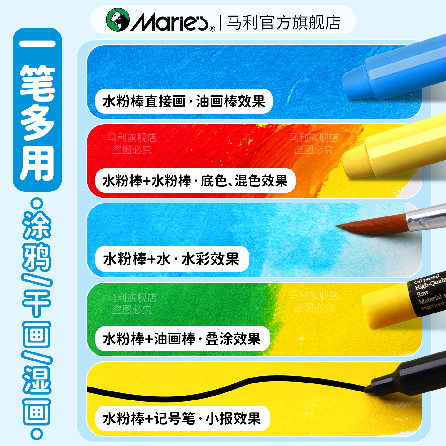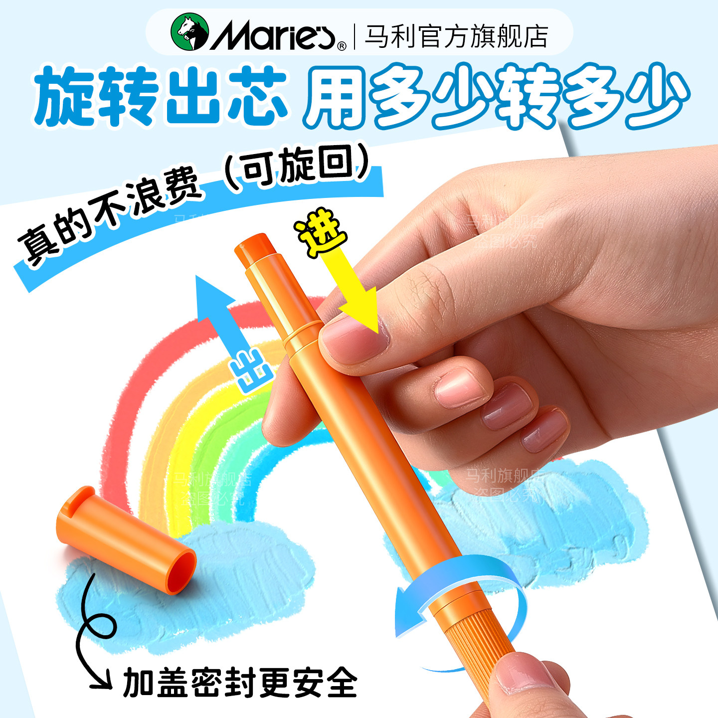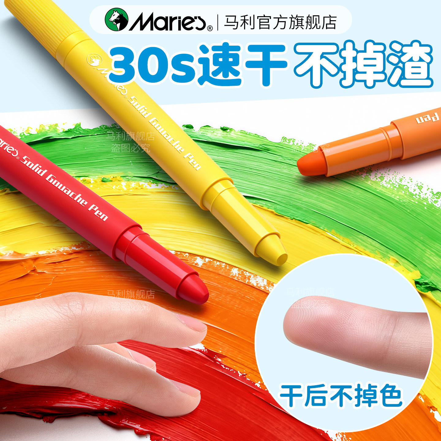 马利牌固体水粉棒12色24色可水洗软性马卡龙水溶性旋转炫彩棒绘画涂鸦笔颜料儿童专用小学生安全美术用品玛丽