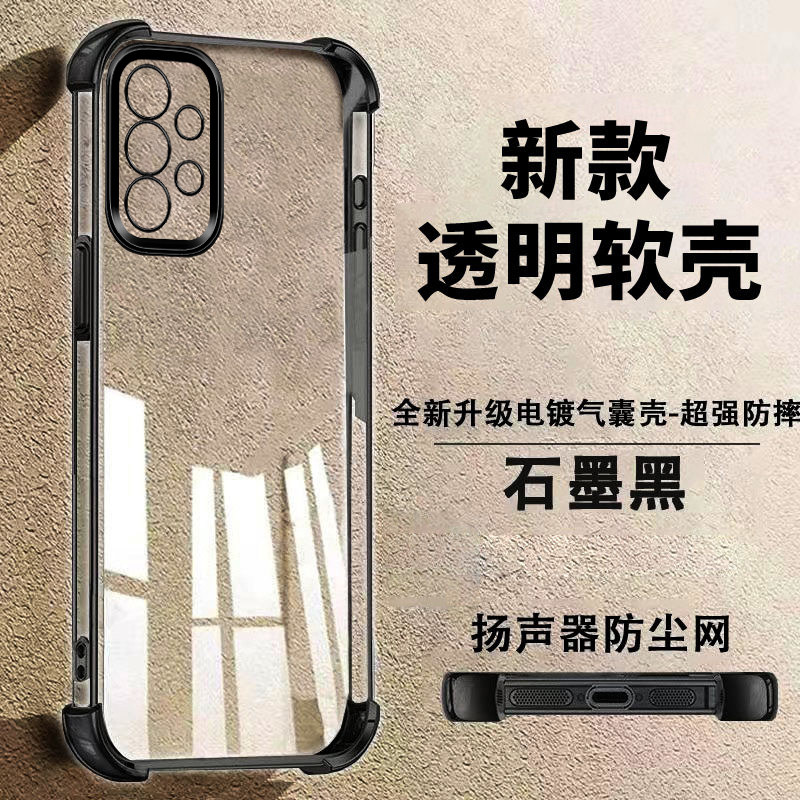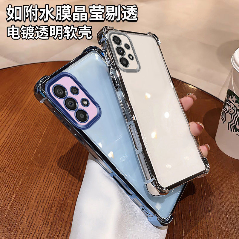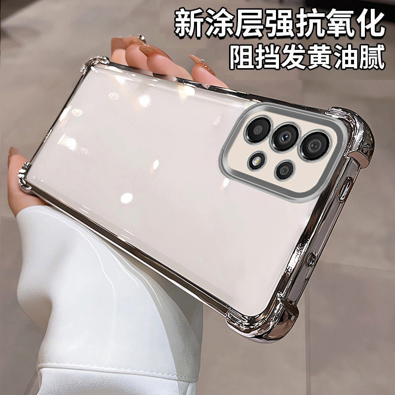 三星a33手机壳新款四角气囊硅胶防摔时尚镜头全包软壳适用Samsunga33高级感奢华强抗氧化简约电镀透明手机壳
