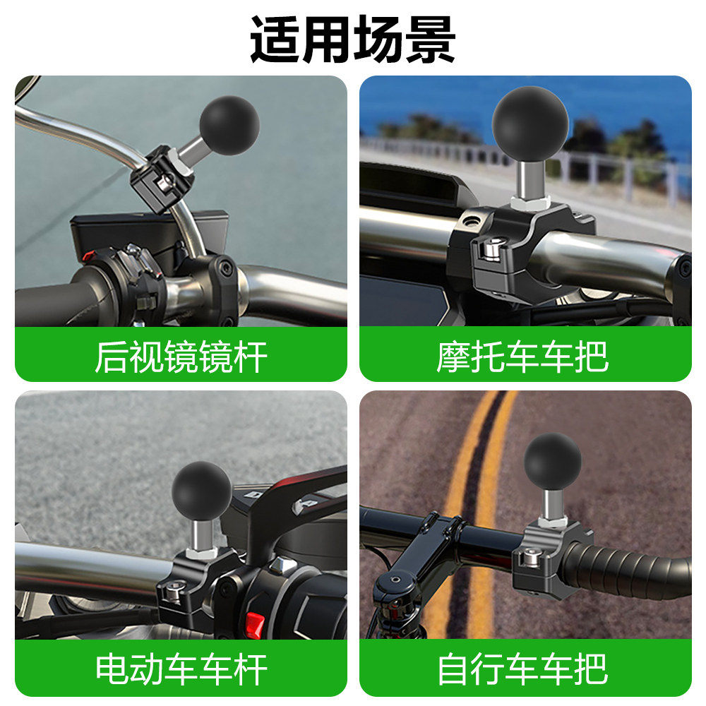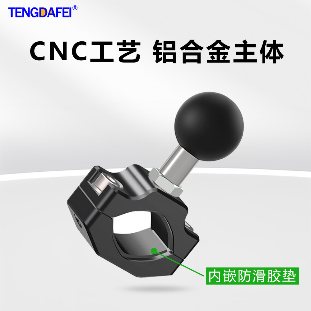 腾达飞TENGDAFEI 万向球头配件摩托车支架连杆车把固定导航运动相机后视镜座铝合金抱箍底座摩托车大中小管夹