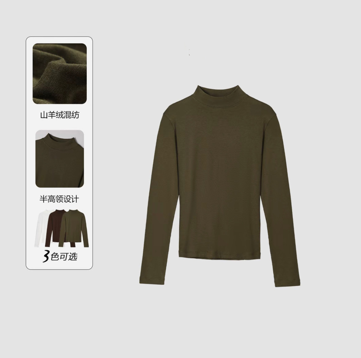 三福打底衫2025新款秋冬季保暖小中领毛衣无缝内搭上衣女装504415