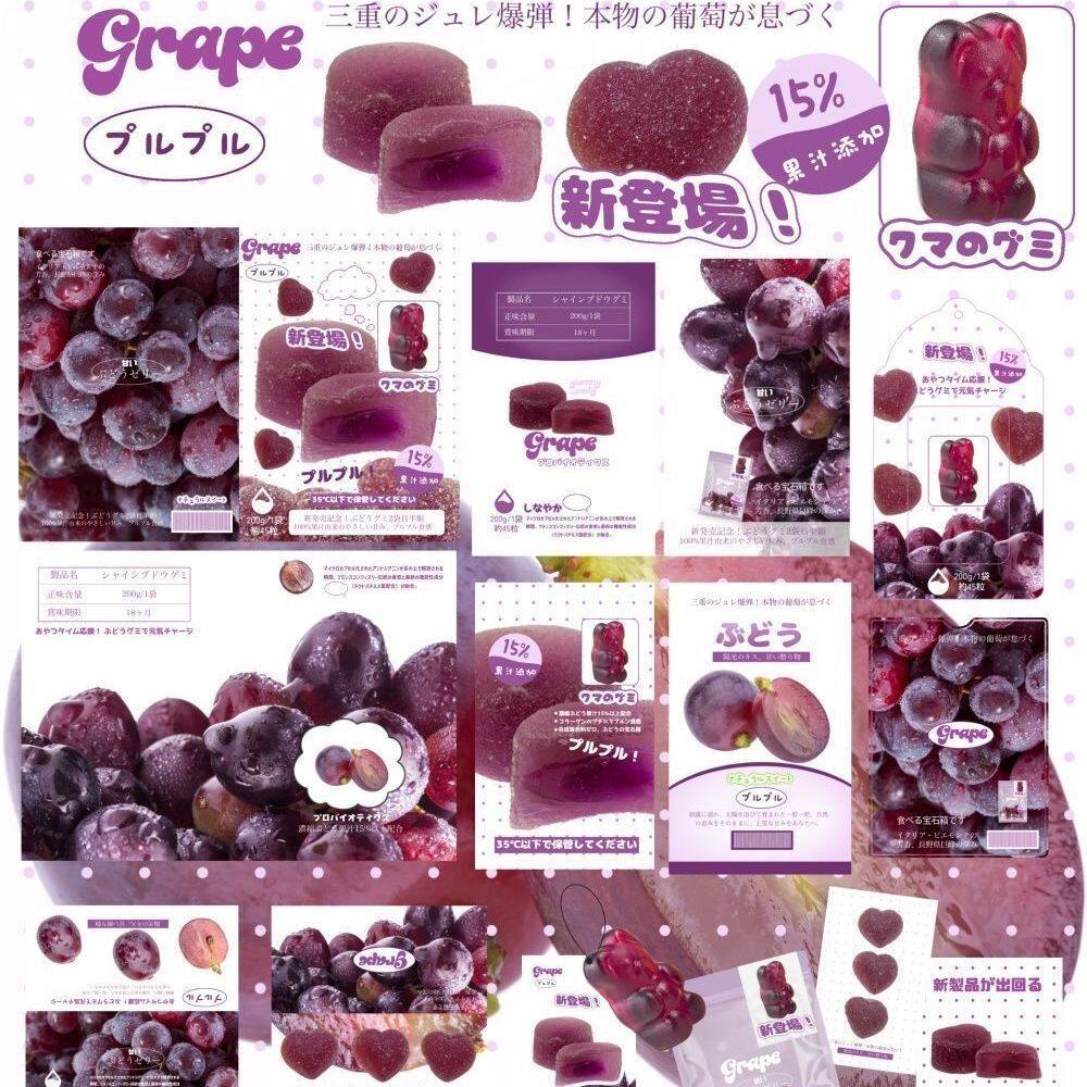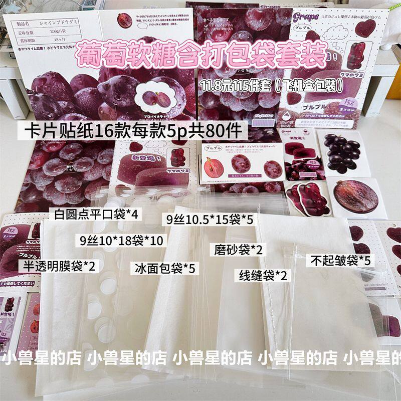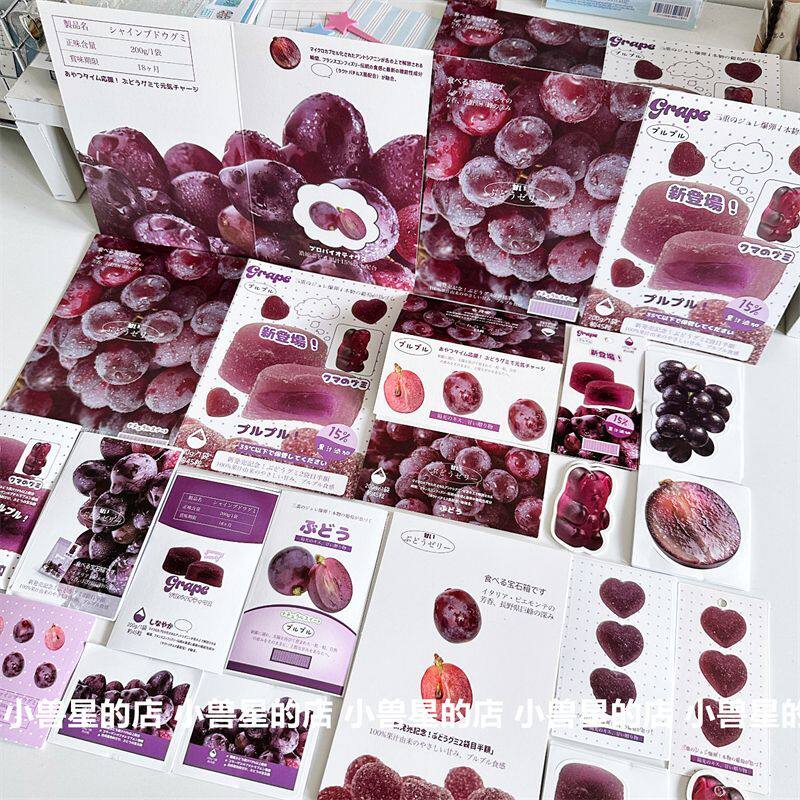 特价紫色葡萄软糖覆膜文创折页卡头打包素材材料封口贴纸手账贴纸