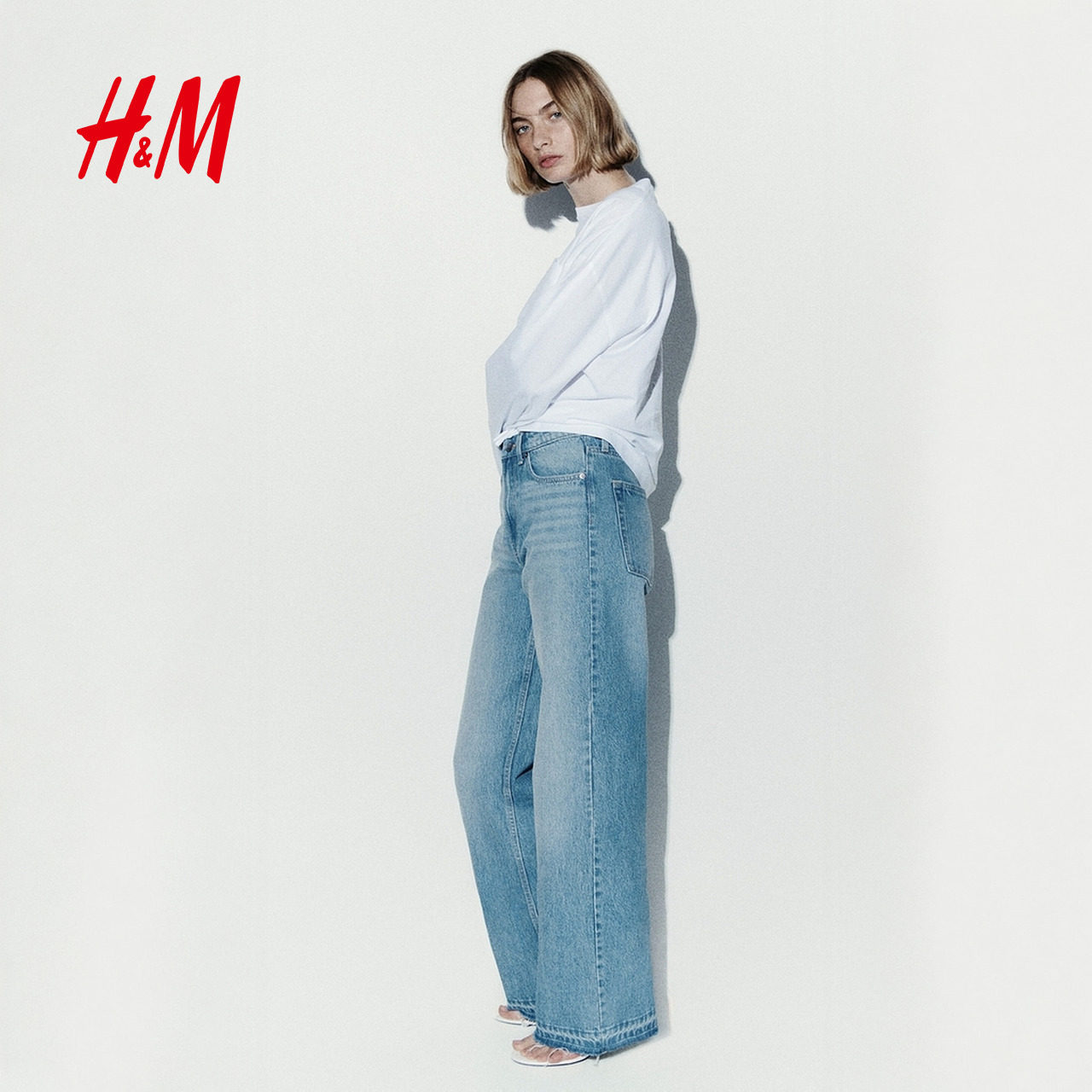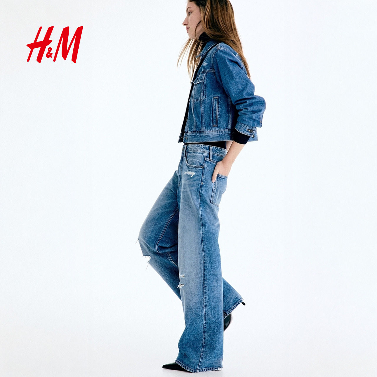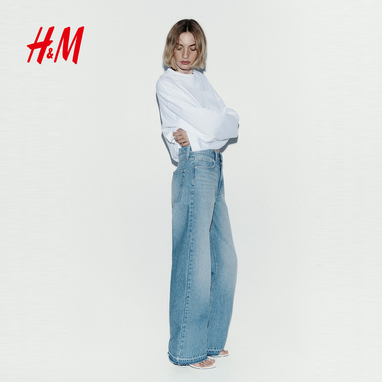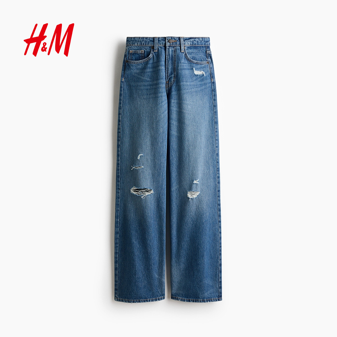 HM女装牛仔裤2026春季新款阔腿版型高腰流浪丹宁牛仔裤1222670