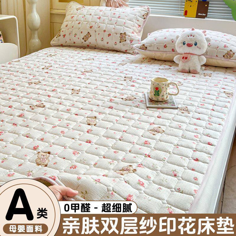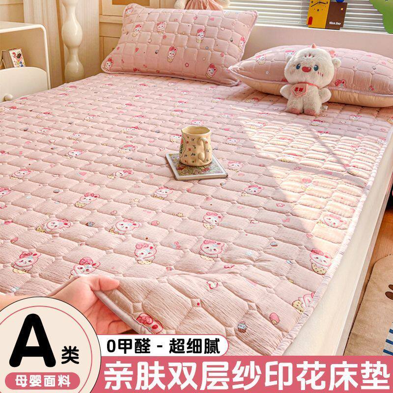 双层纱床护垫居家单双人薄款夹棉床单学生宿出租屋床褥垫四季可用