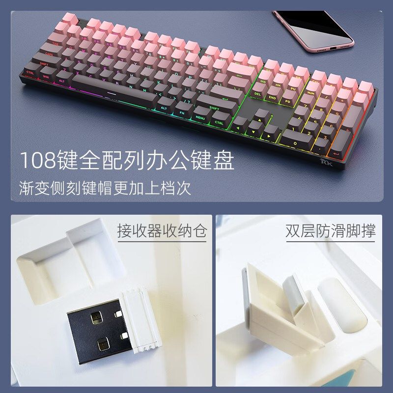 RK932蓝牙三模TTC金粉快银月白轴冰静轴凯华轴无线游戏机械键盘