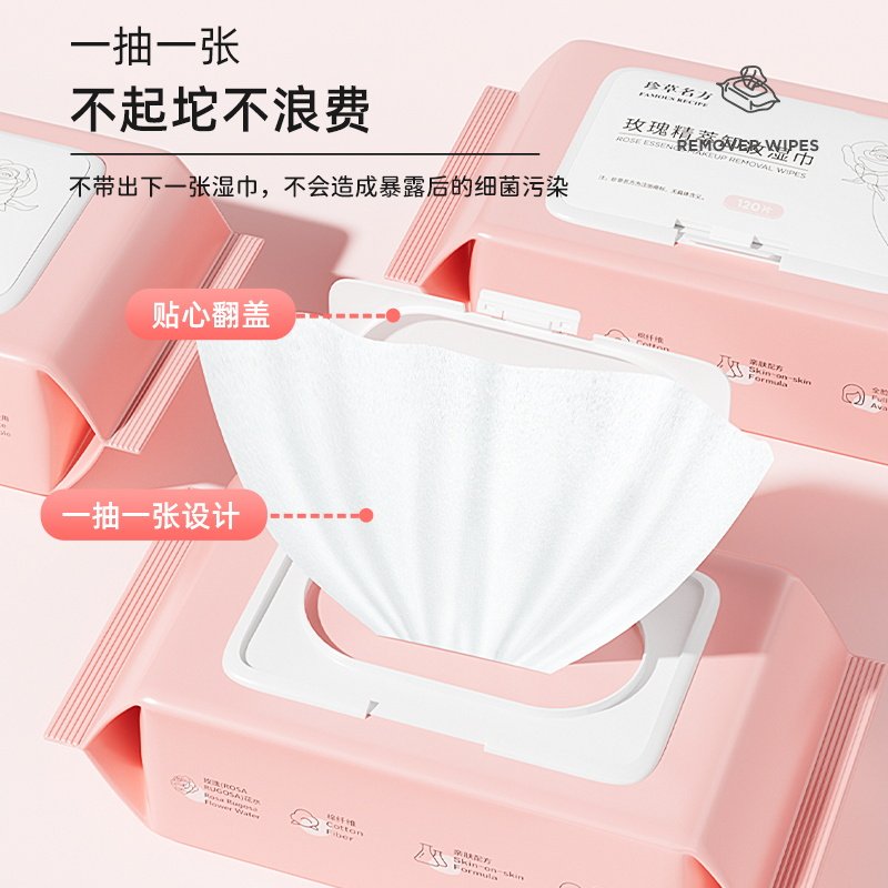 玫瑰卸妆湿巾一次性便携眼唇脸三合一脸部温和不刺激深层清洁正品