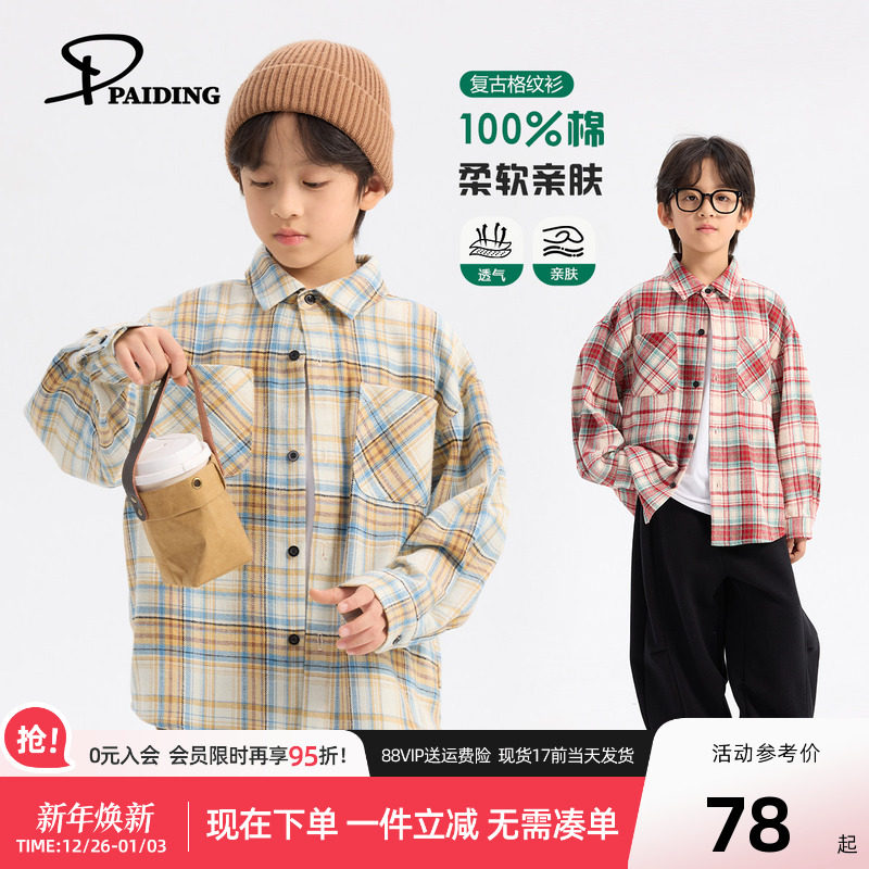 派町童装男童衬衫2025秋季新款大童撞色格纹衬衣儿童休闲韩版上衣