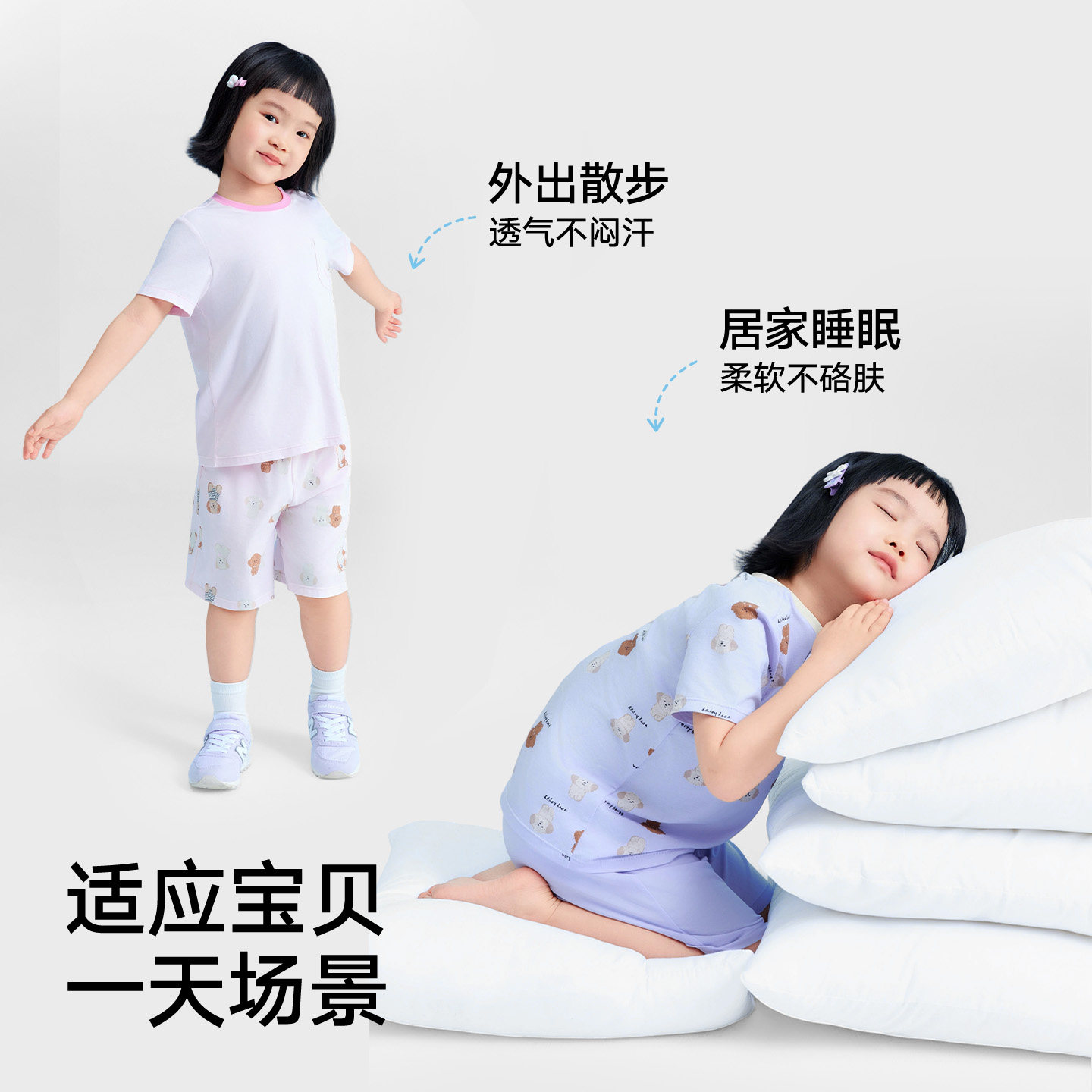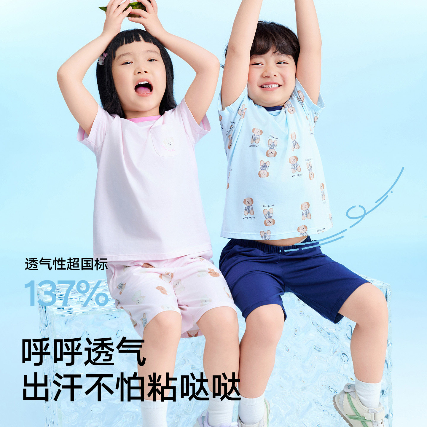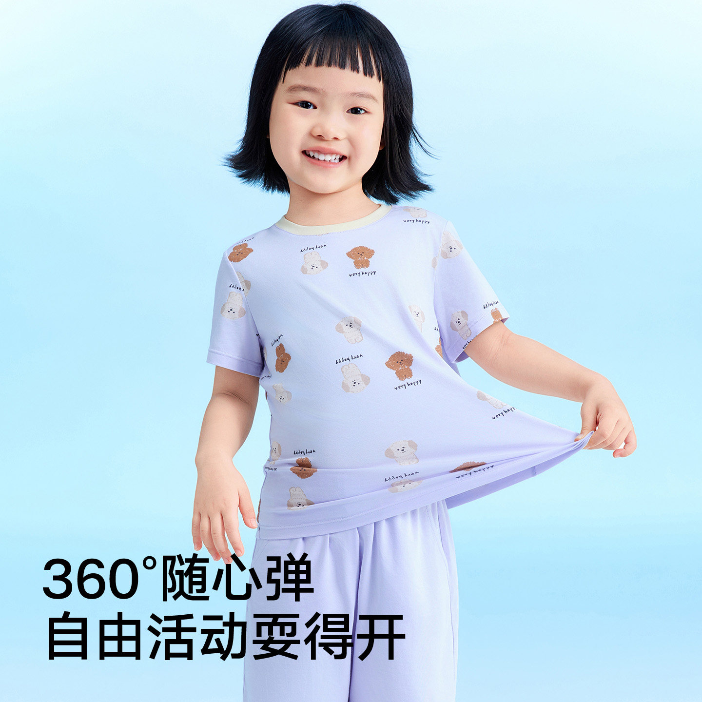 松山棉店小薄荷棉莫儿童家居服套装冰丝短袖短裤抑菌夏季薄款睡衣