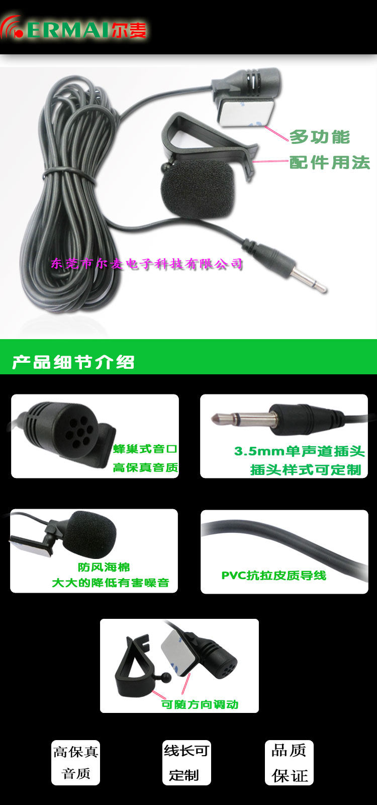 车载粘贴式麦克风 车载蓝牙导航仪外置外接话筒 DVD咪麦