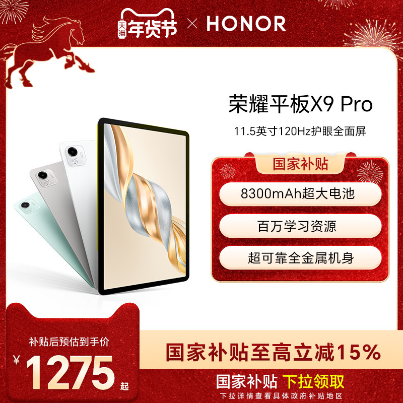 【政府补贴15%】HONOR/荣耀平板X9 Pro 平板电脑 11.5英寸高刷全面屏 安卓办公学习考研官方旗舰店正品