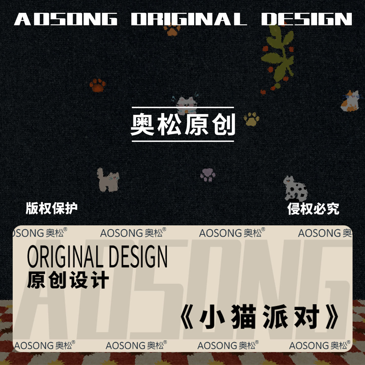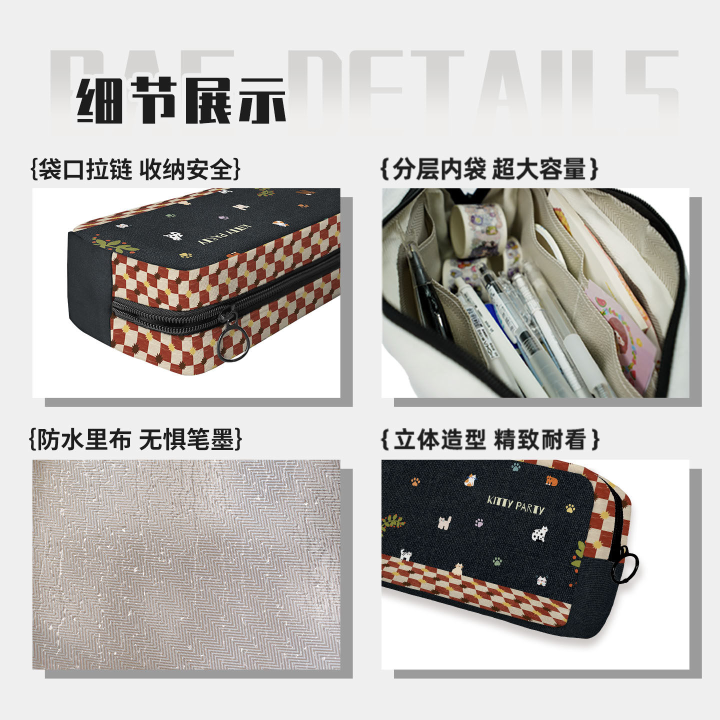 奥松原创小猫派对男女孩2026新款小众不撞款韩系高颜值ins风儿童幼儿园学生一年级初中生帆布大容量笔袋定制