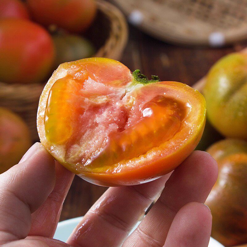 内蒙古五原黄柿子新鲜现摘沙瓤自然熟黄色西红柿水果番茄生吃蔬菜