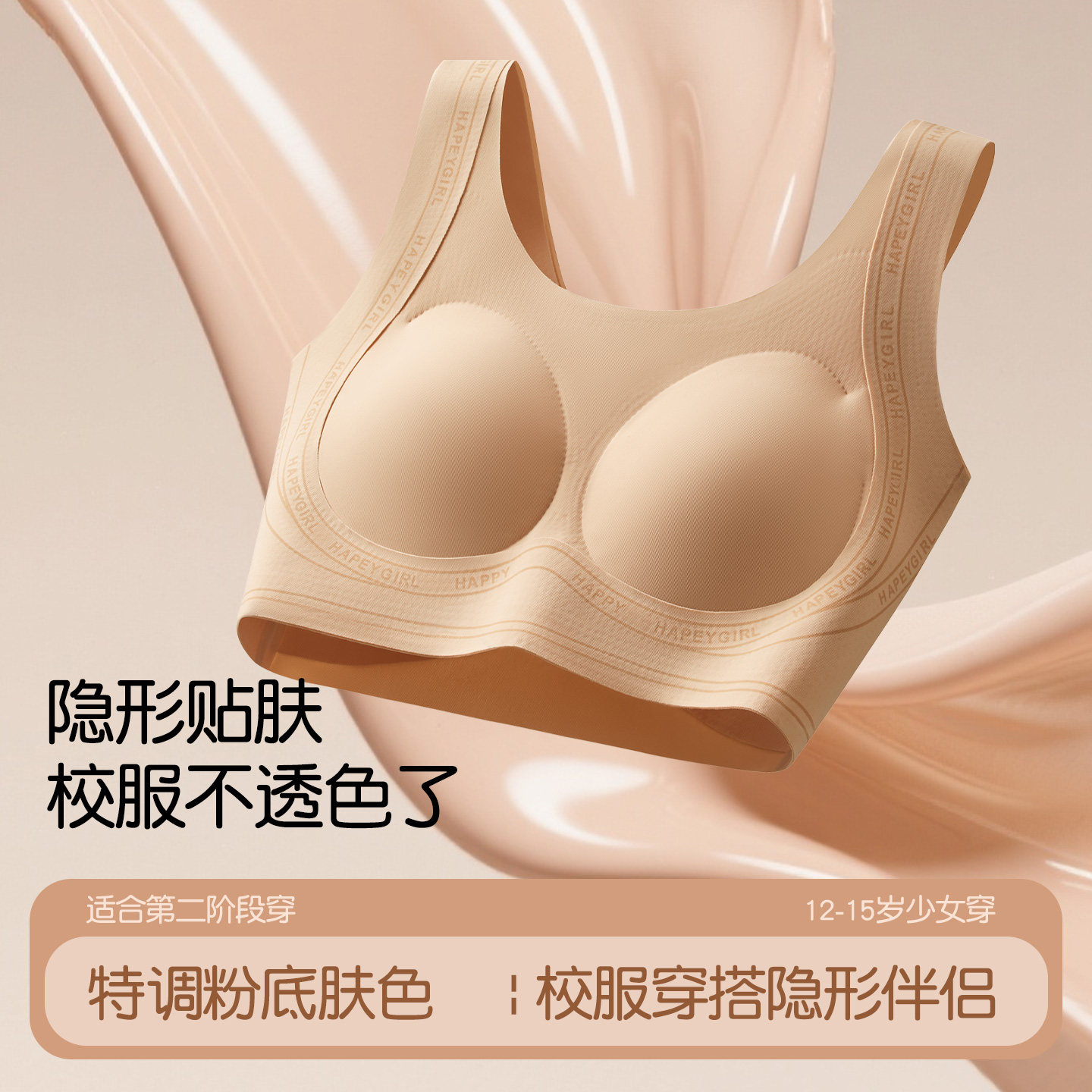 古今初高中生少女文胸隐形粉底液内衣女孩发育期运动防震薄款背心
