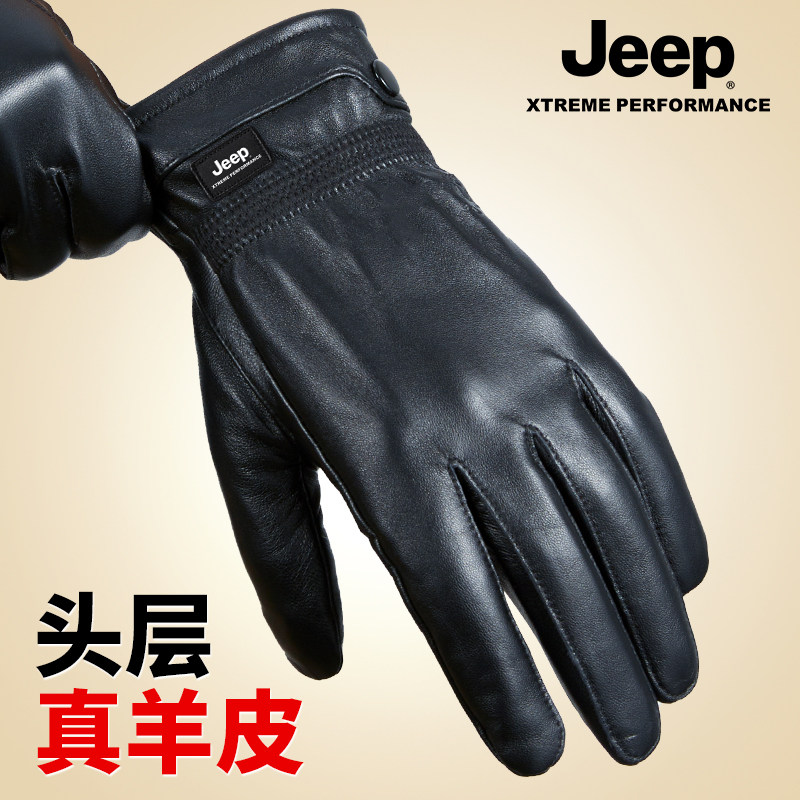 jeep吉普男士羊皮手套冬季骑车电动车秋绵羊真皮防风骑行皮手套男