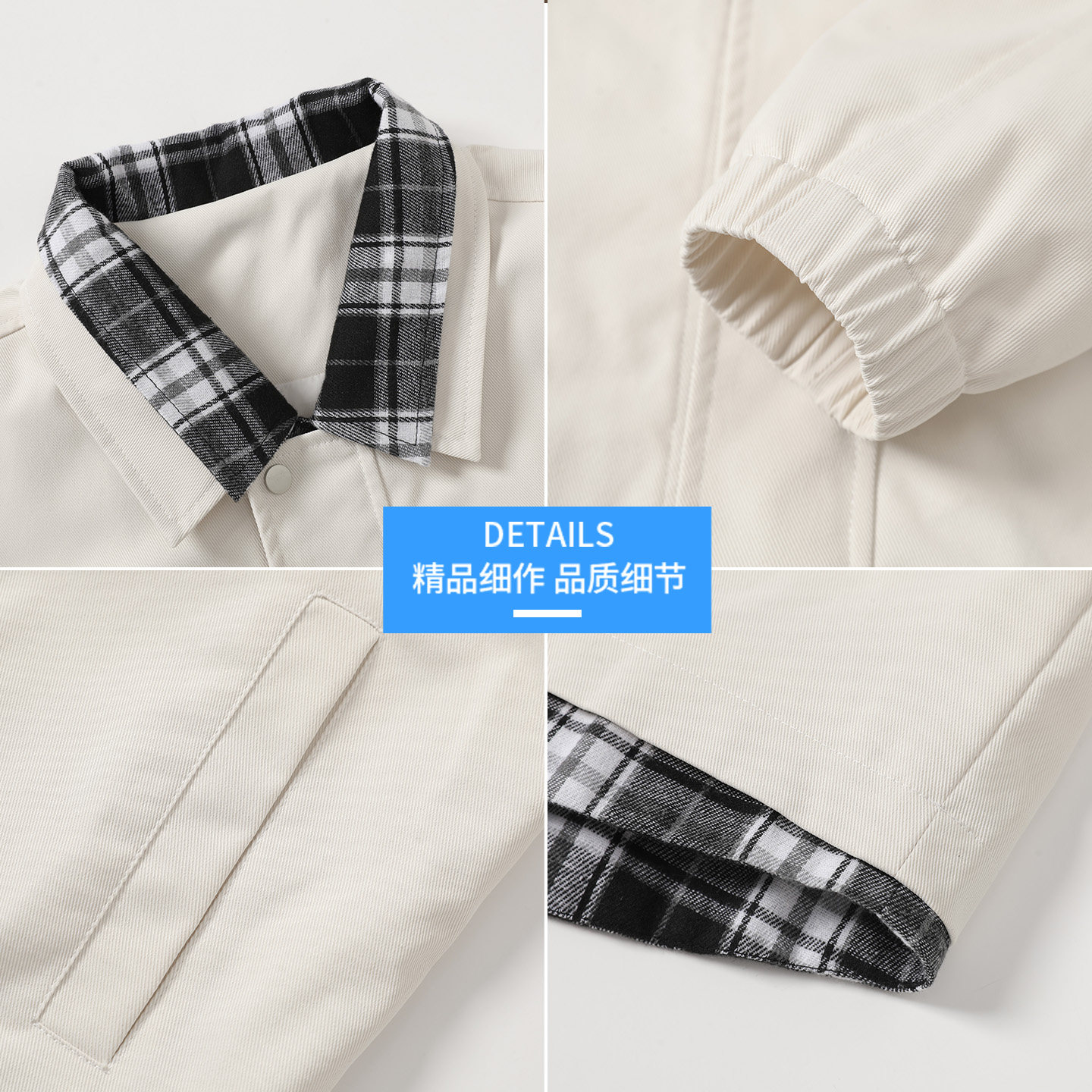 查尔斯桃心 拼色格子双面穿立领运动夹克男女春秋季防风情侣外套