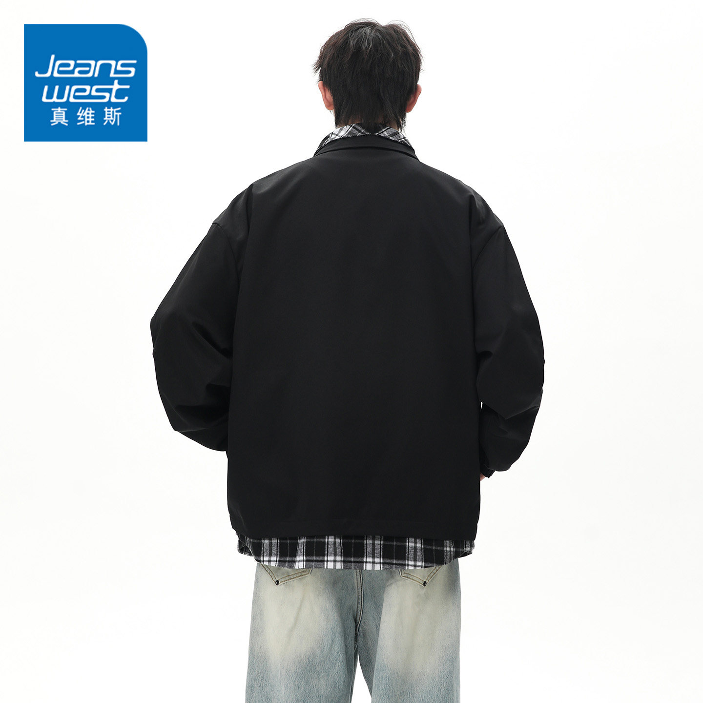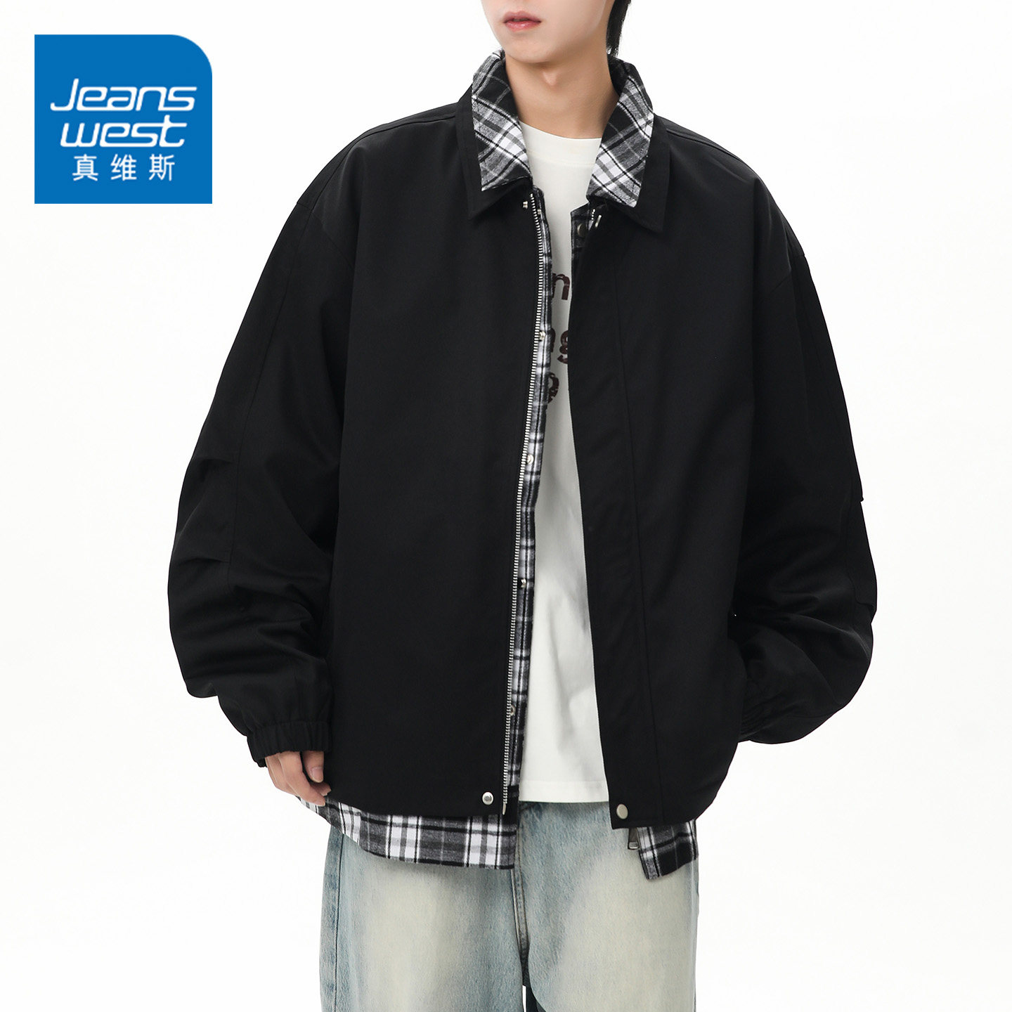 GQ真维斯美拉德复古工装假两件翻领夹克男士秋冬季高级感外套上装