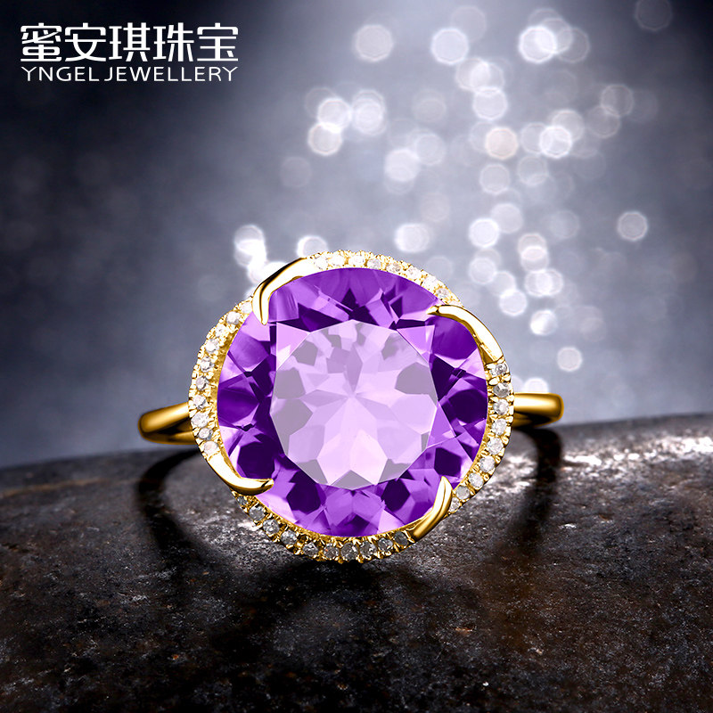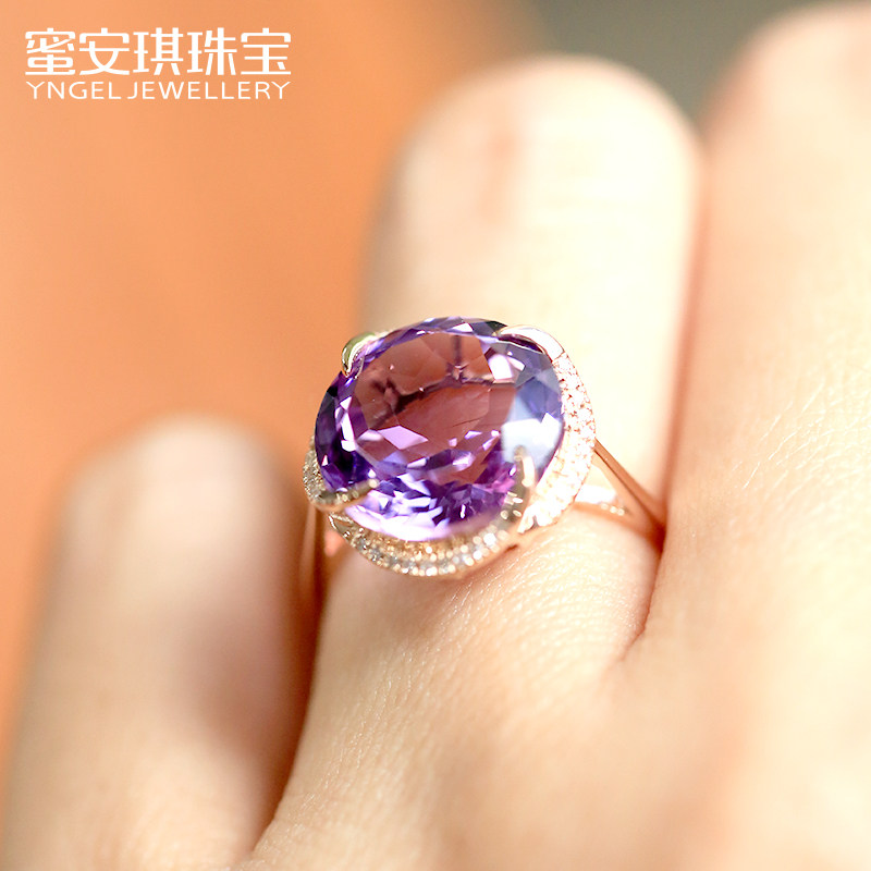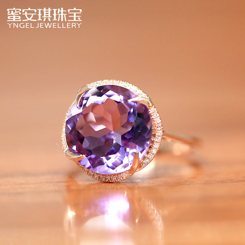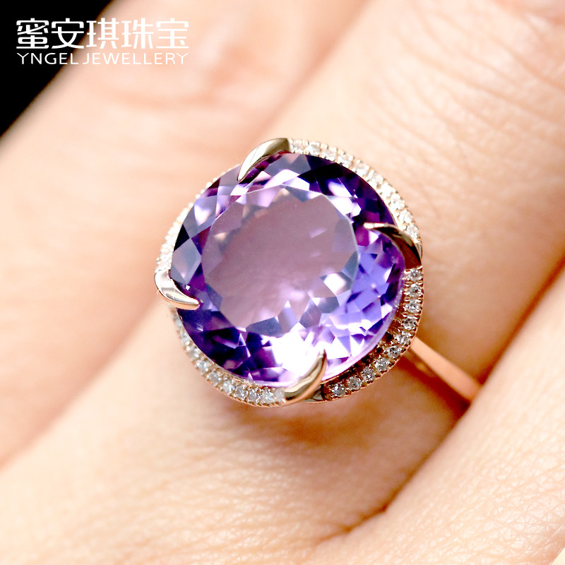 蜜安琪 5克拉天然紫水晶戒指女 18K玫瑰金镶嵌钻石彩色宝石定制